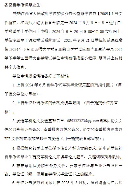 2024年9月江西師大自學(xué)考試學(xué)士學(xué)位申請(qǐng)的通知