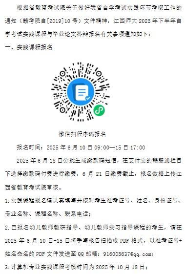 2025年下半年江西師范大學自考實踐報考及本科論文申報通知1