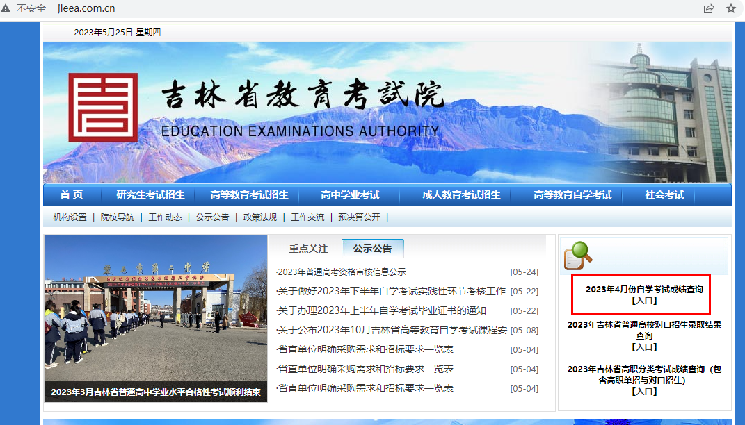點擊進(jìn)入:2023年4月吉林自考成績查詢?nèi)肟?/span>