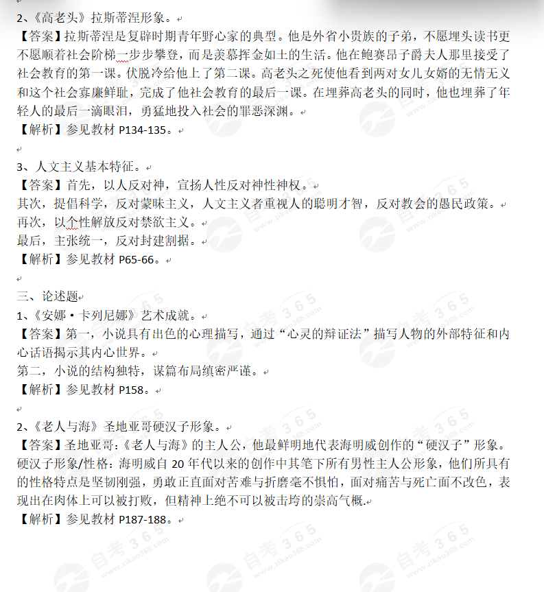 2025年10月自考外國文學史部分試題及答案(考友回憶版)