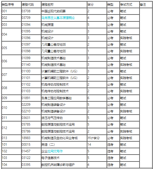 廣東自考機械設(shè)計制造及其自動化專業(yè)計劃