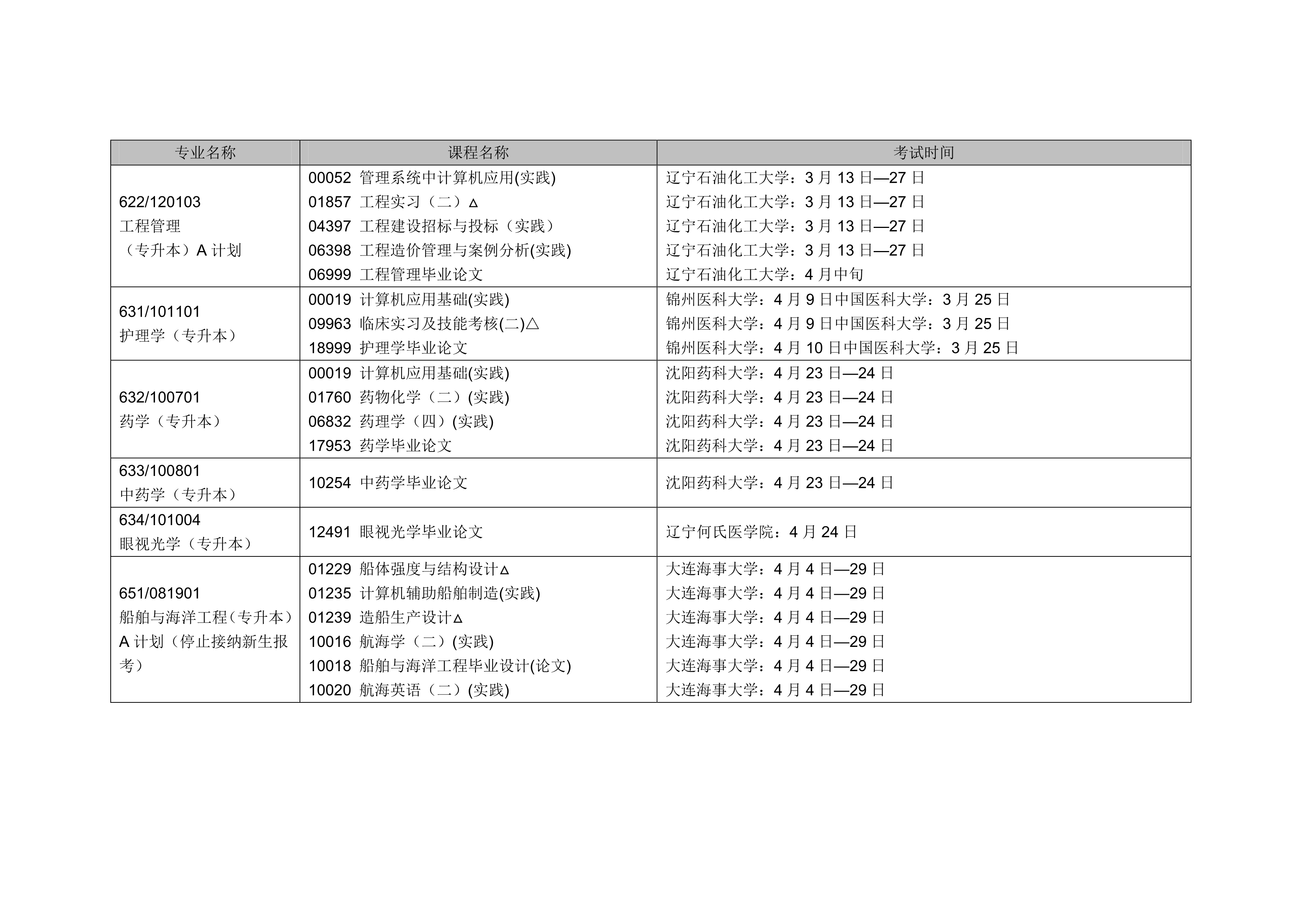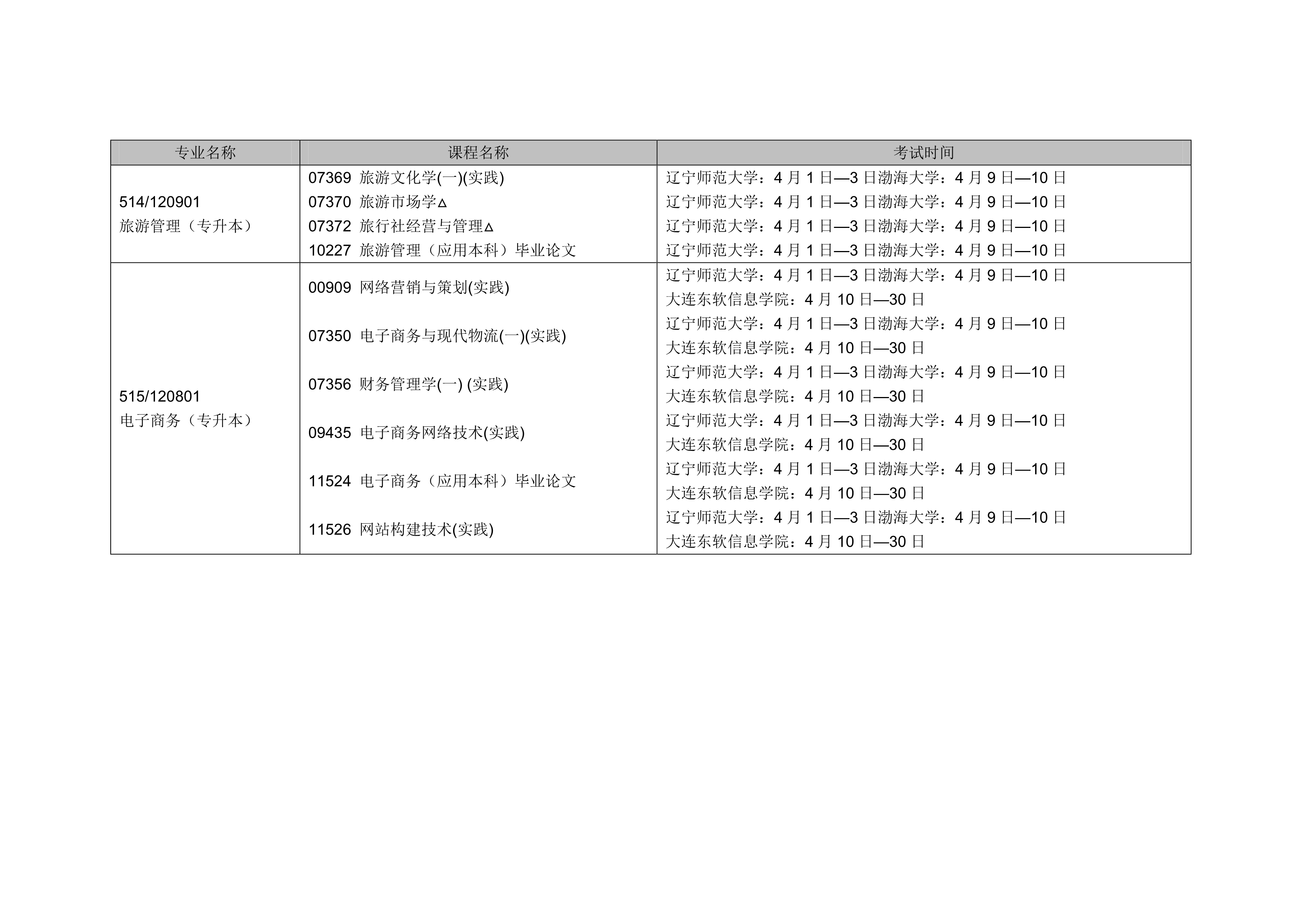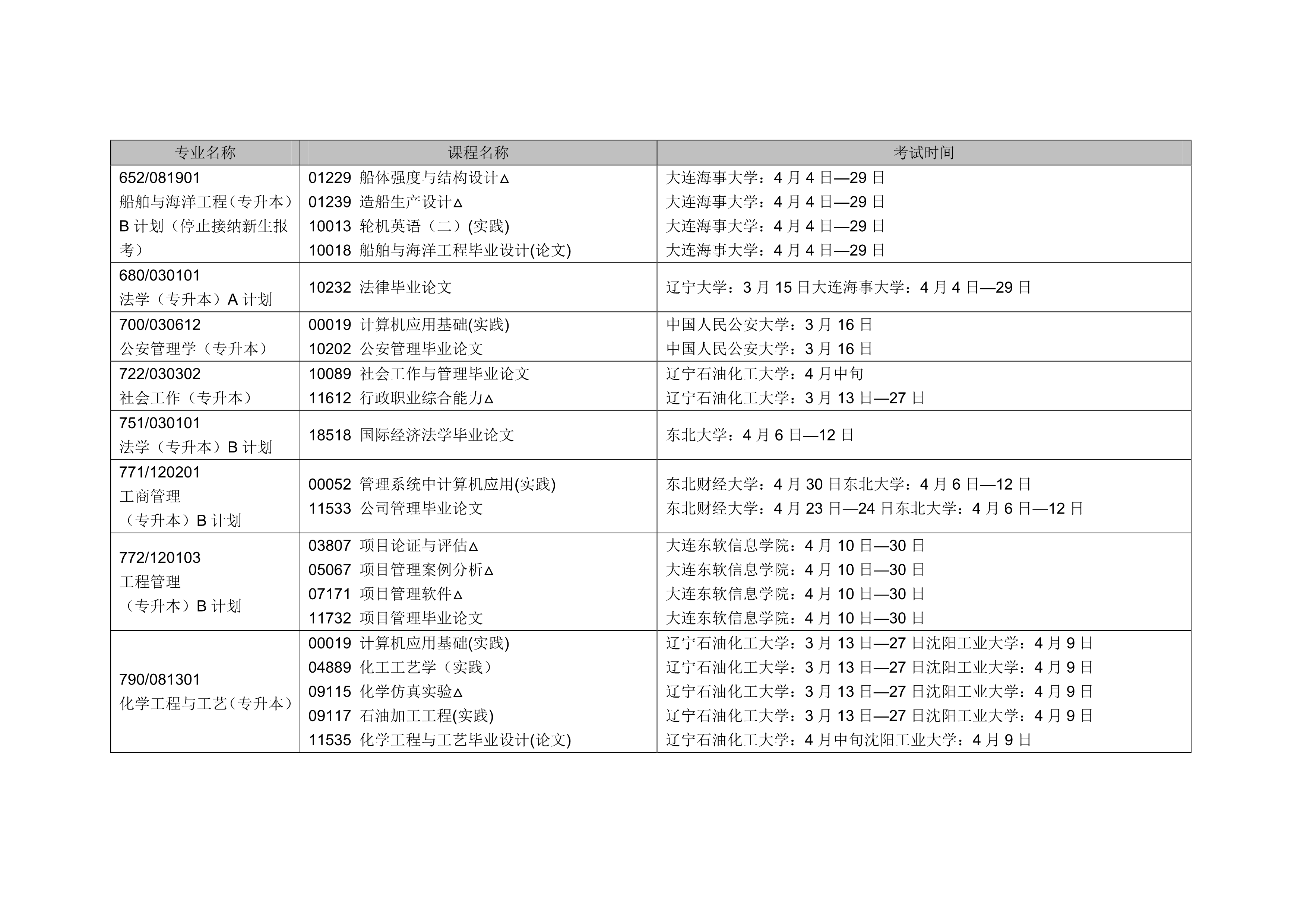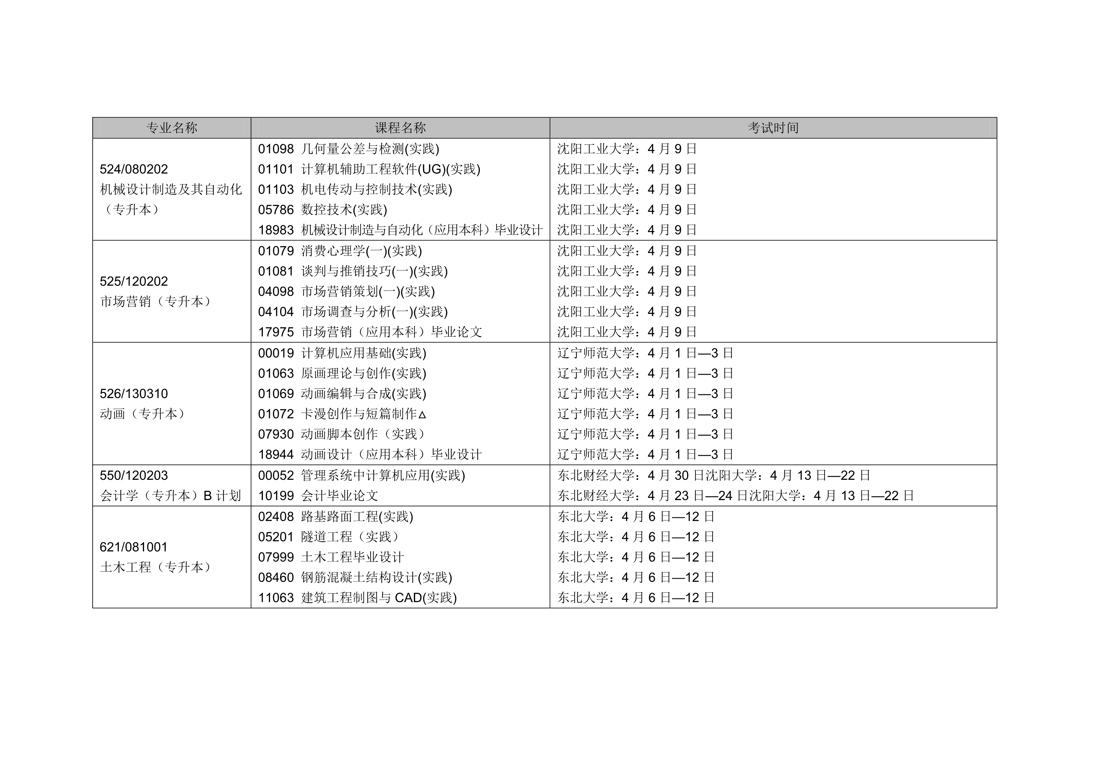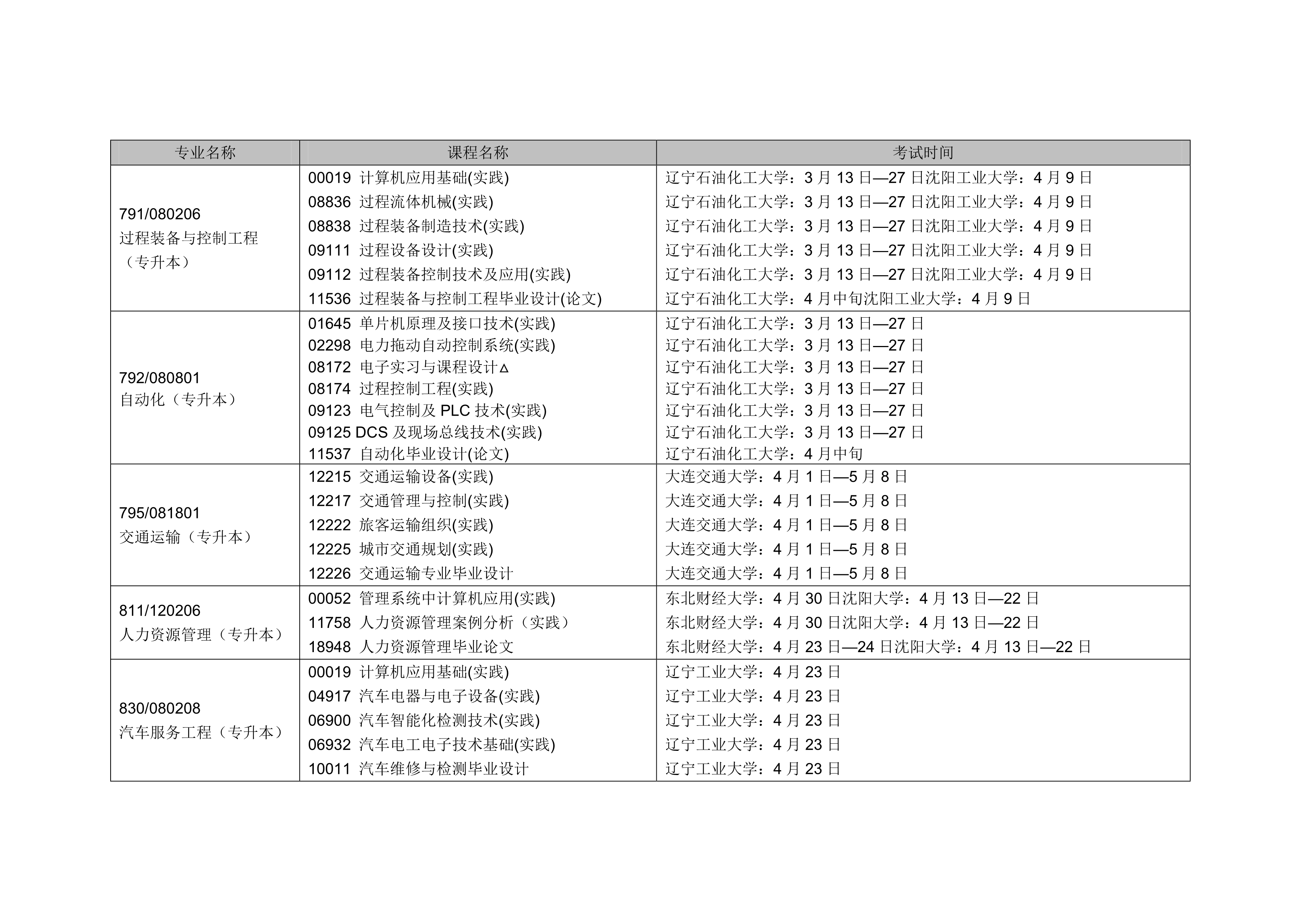- 2024年4月遼寧自考本科交通運輸專業(yè)計劃
