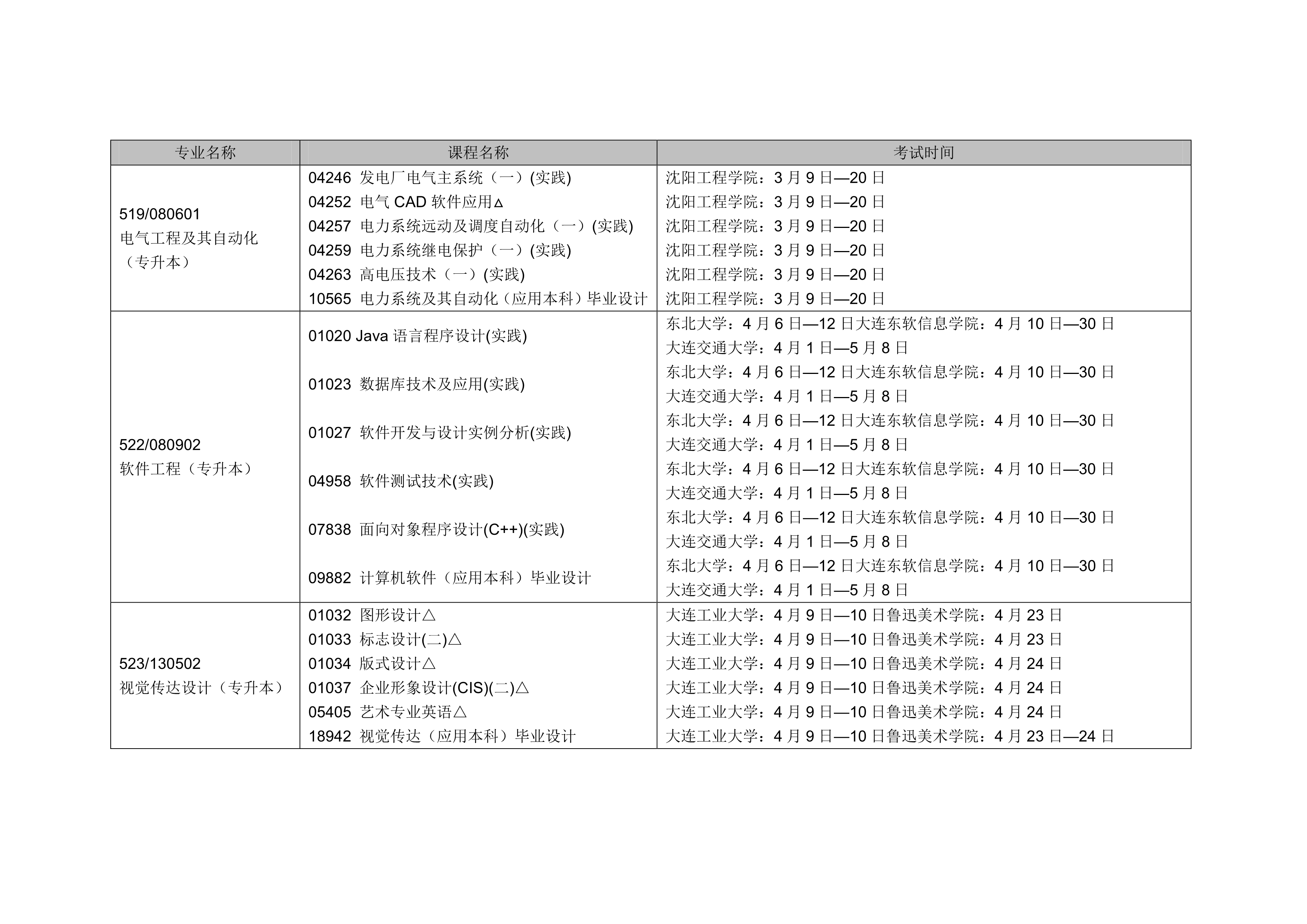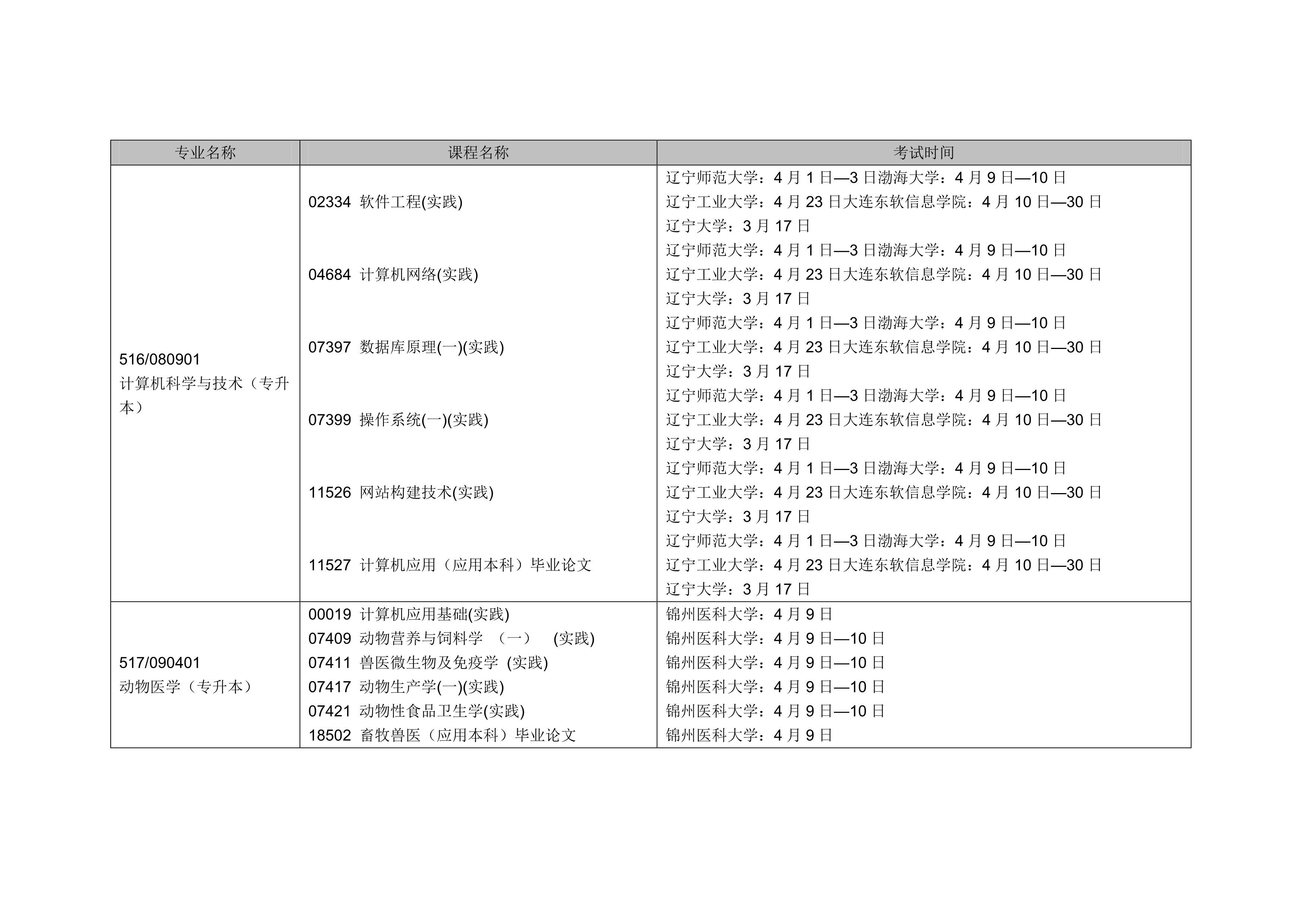 - 2024年4月遼寧自考本科軟件工程專業(yè)計劃