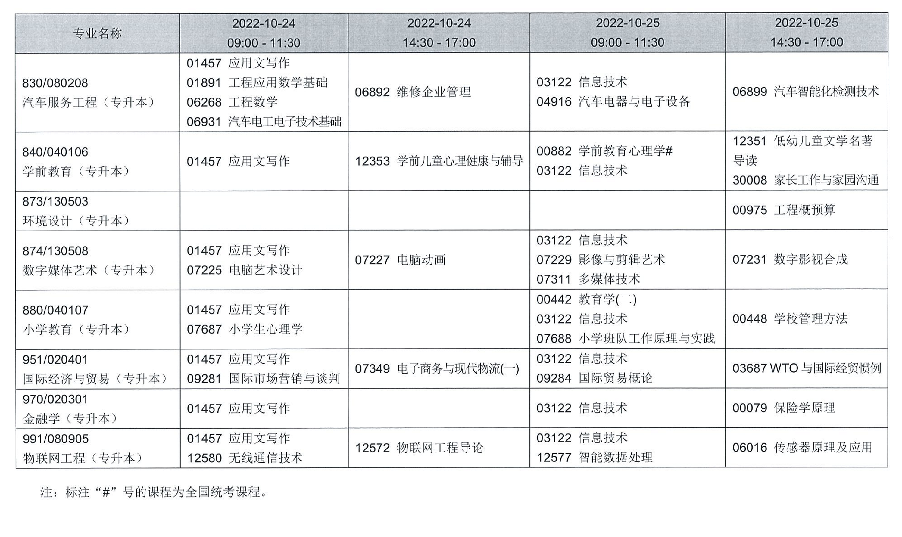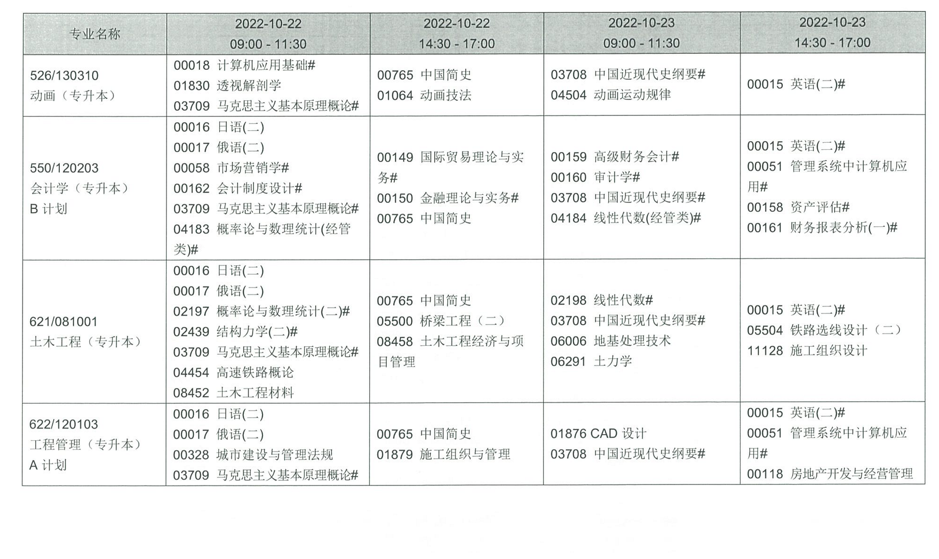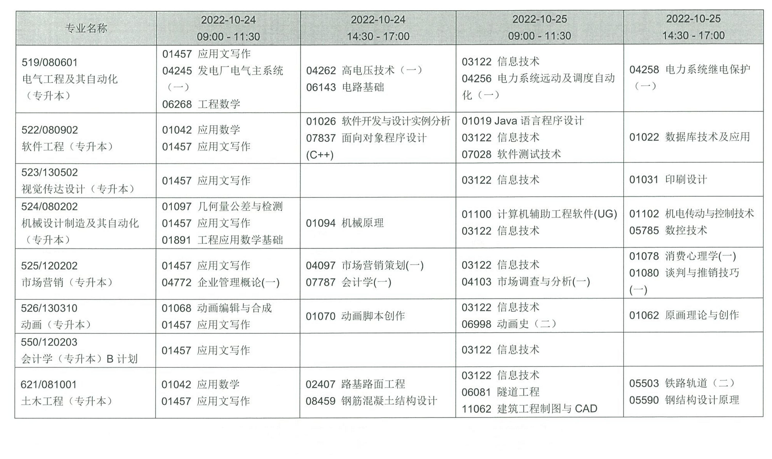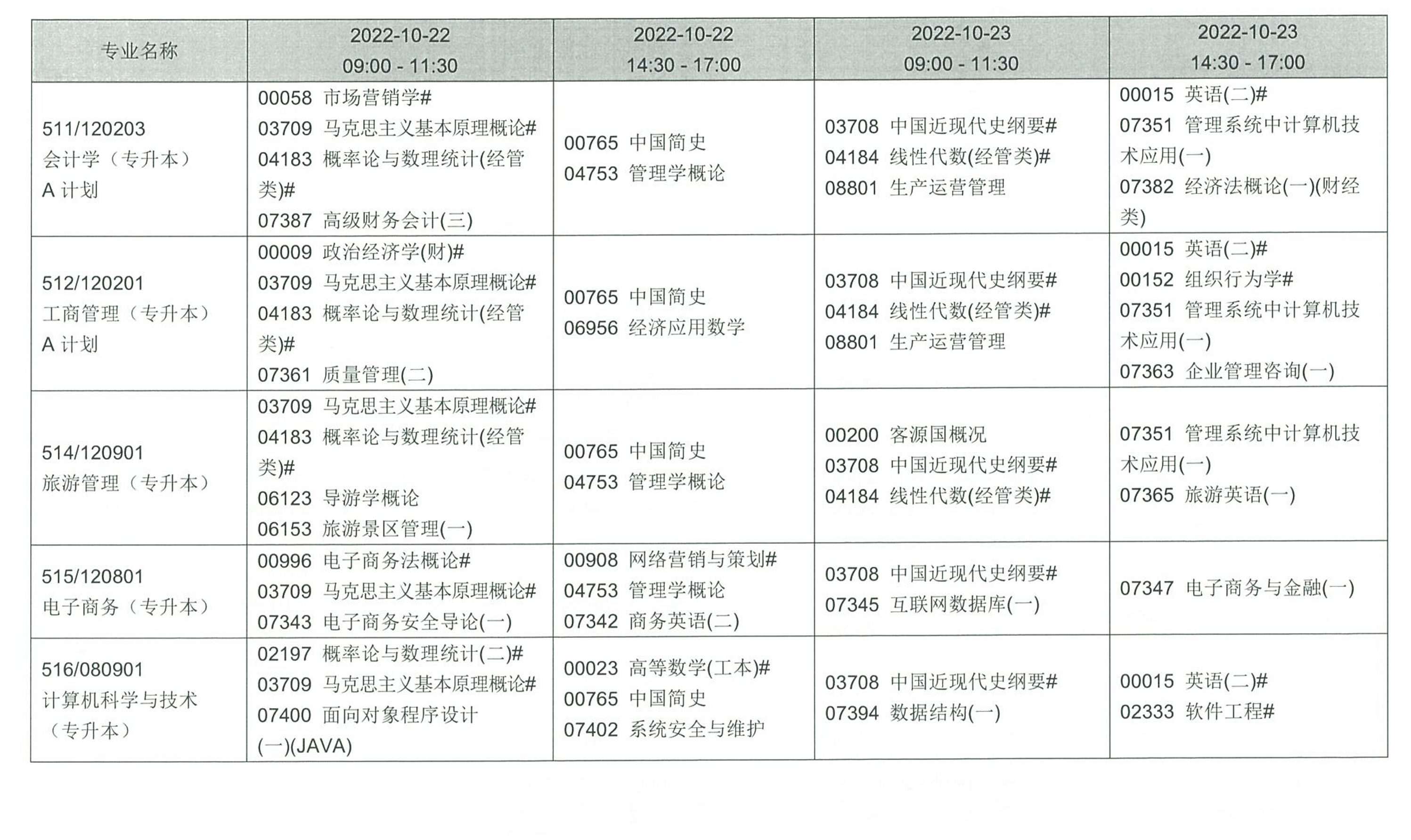四、考試課程和時(shí)間安排