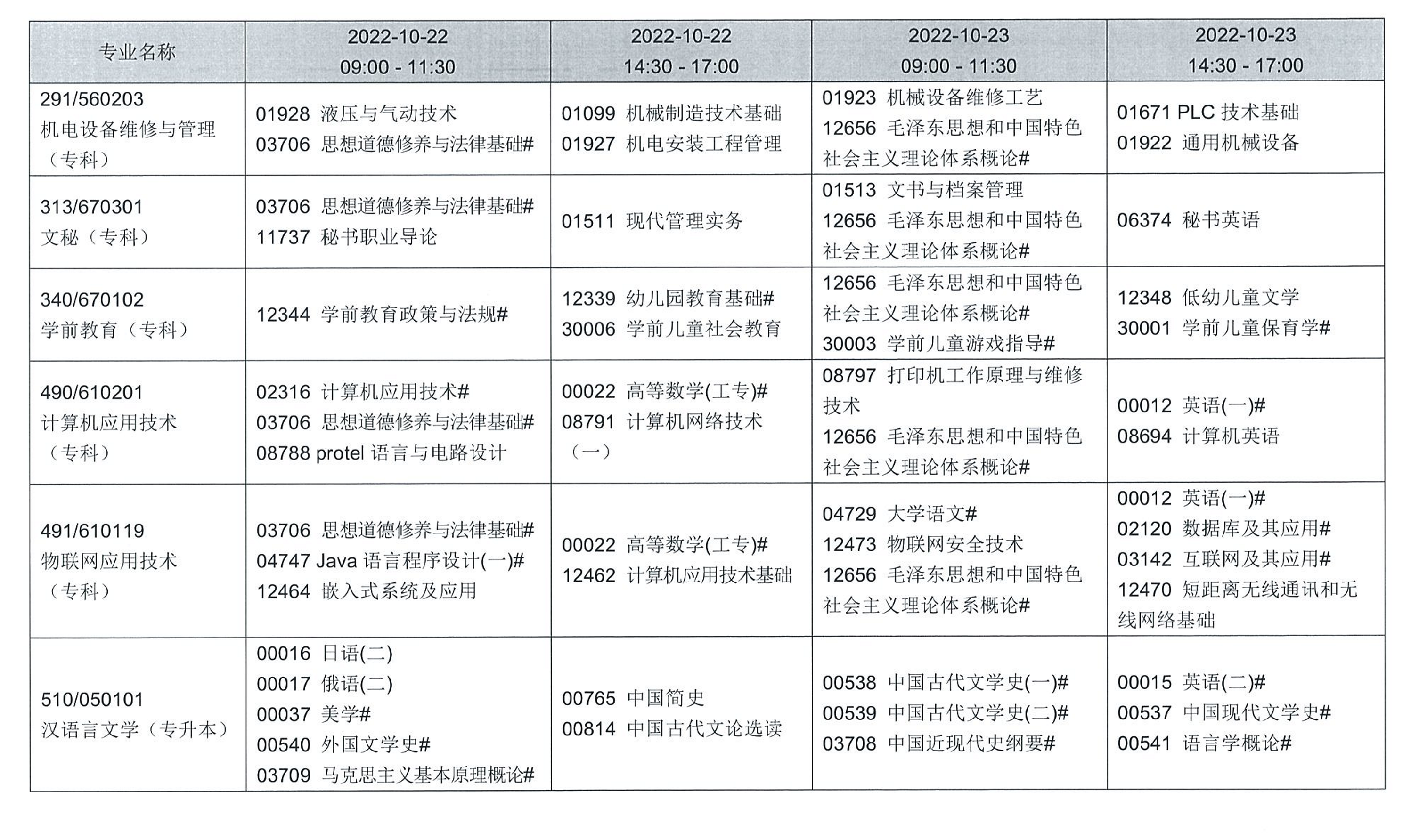 受新冠肺炎疫情影響,遼寧省2022年上半年理論課延期考試時(shí)間為10月24日、25日,2022年下半年理論課考試時(shí)間為10月22日、23日,上半年延期考試各專(zhuān)業(yè)考試課程和時(shí)間安排詳見(jiàn)附表,下半年各專(zhuān)業(yè)考試課程和時(shí)間安排詳見(jiàn)附表。2022年下半年實(shí)踐環(huán)節(jié)考核和論文答辯的時(shí)間由各主考學(xué)校確定,各專(zhuān)業(yè)實(shí)踐環(huán)節(jié)考核課程及時(shí)間安排詳見(jiàn)附表。