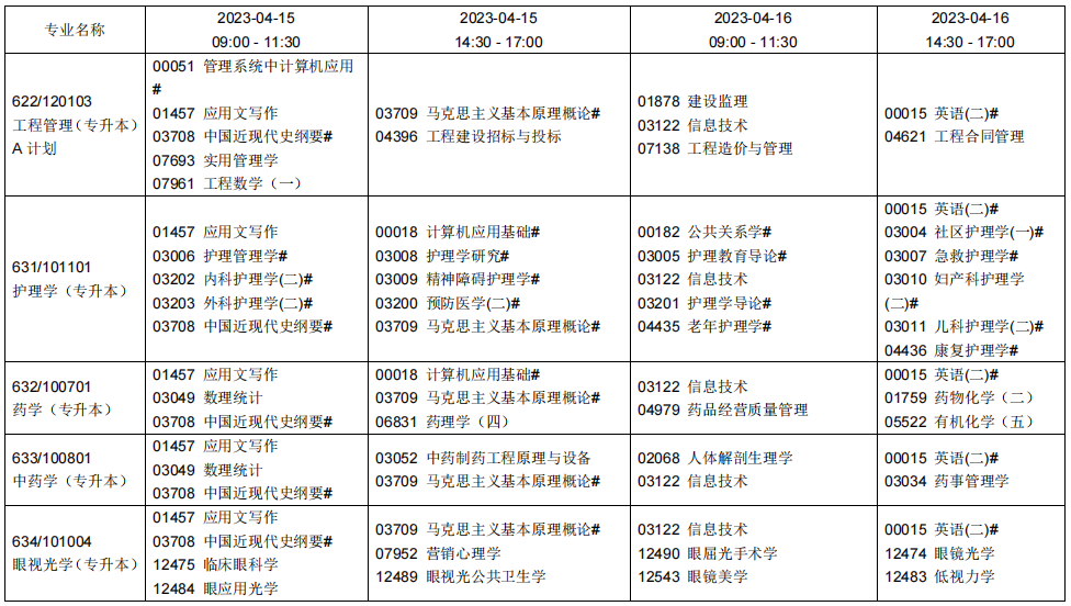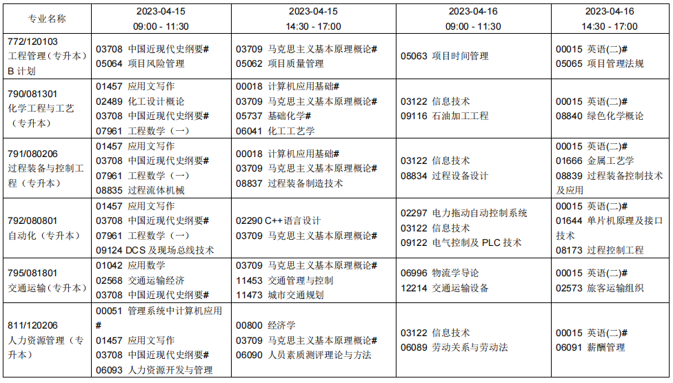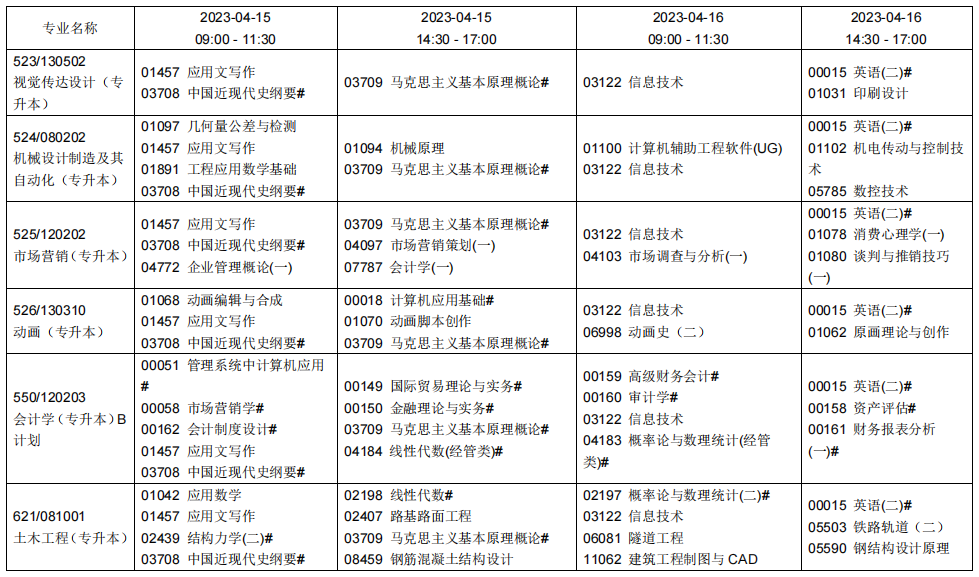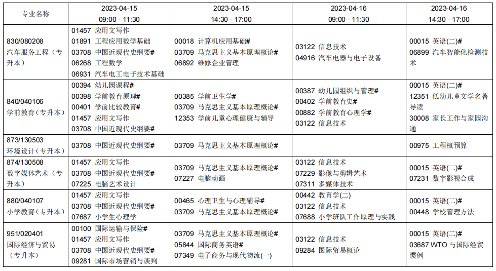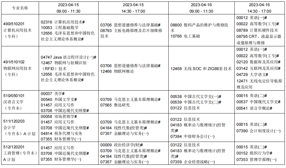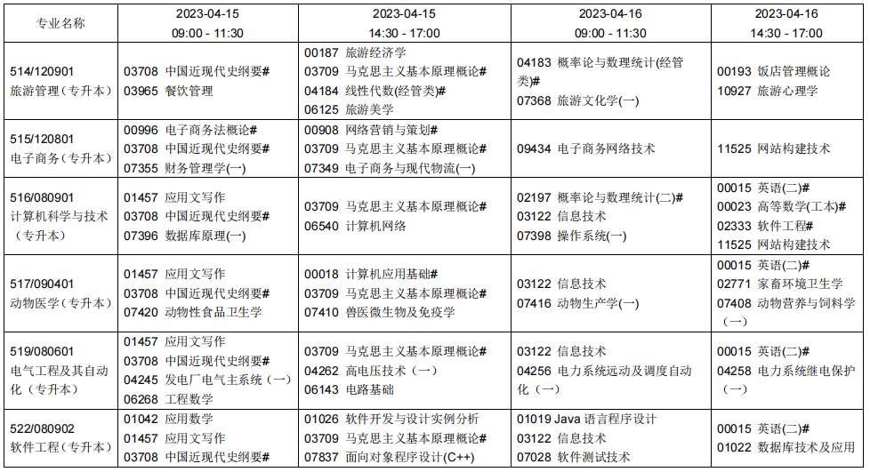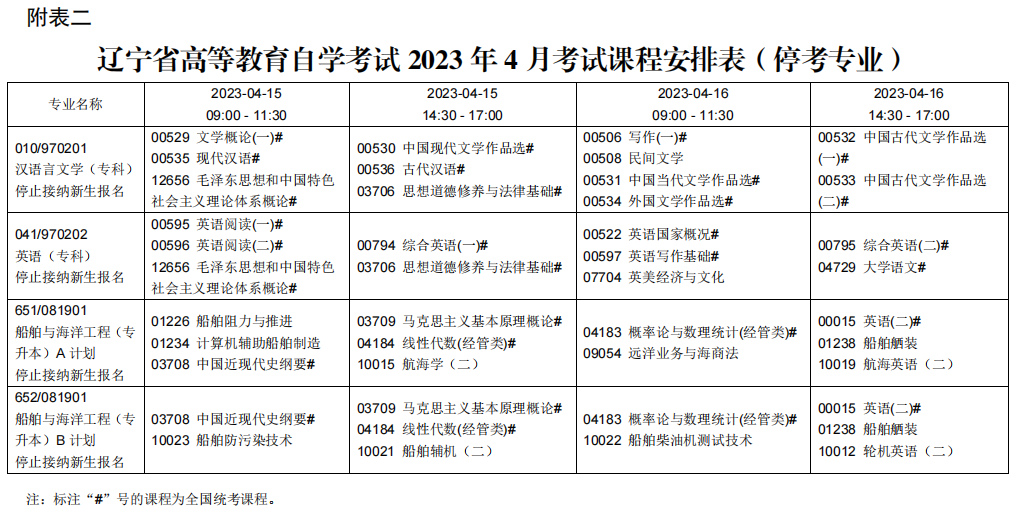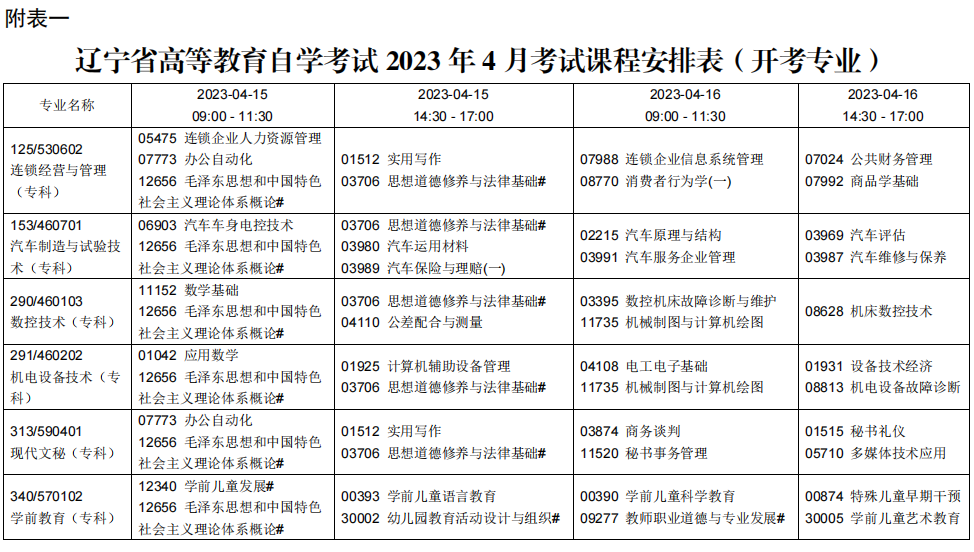 遼寧省高等教育自學考試2023年4月考試課程安排表