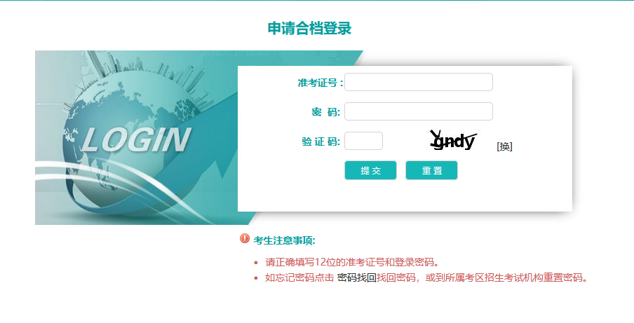 2. 閱讀完考生必讀后點擊“確認”按鈕進入登錄頁面。