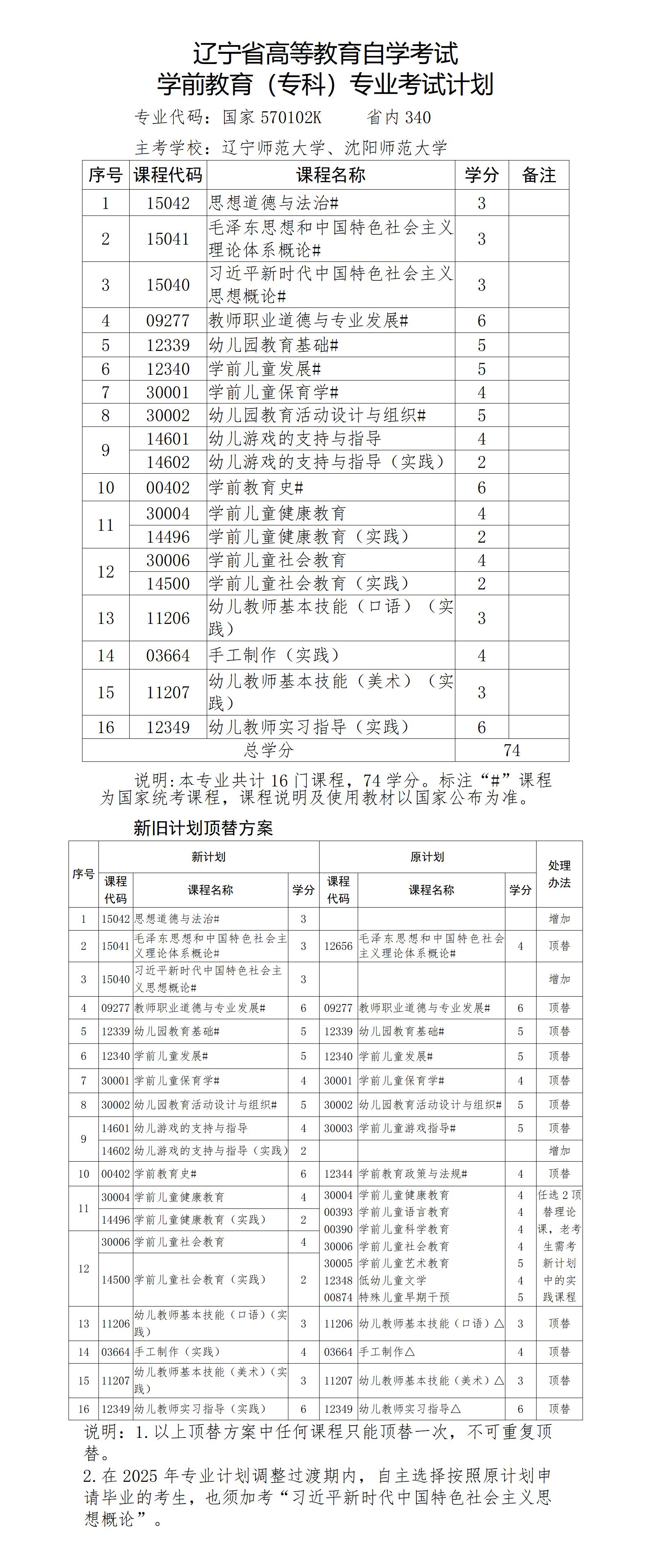 2025年4月遼寧自考??茖W(xué)前教育專業(yè)計(jì)劃