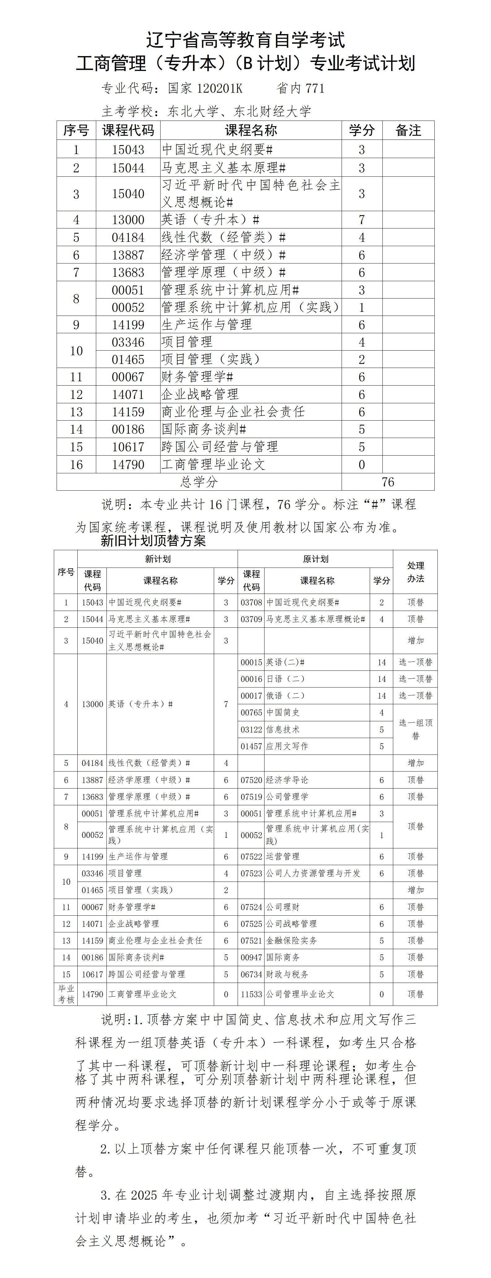 2025年4月遼寧自考本科工商管理(B 計(jì)劃)專業(yè)計(jì)劃