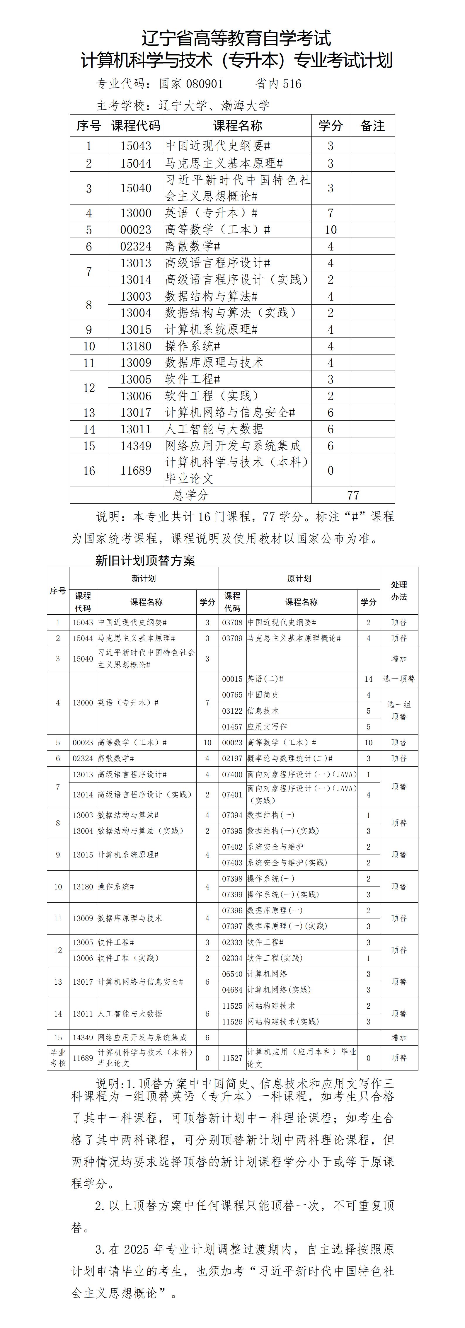 2025年4月遼寧自考本科計(jì)算機(jī)科學(xué)與技術(shù)專業(yè)計(jì)劃