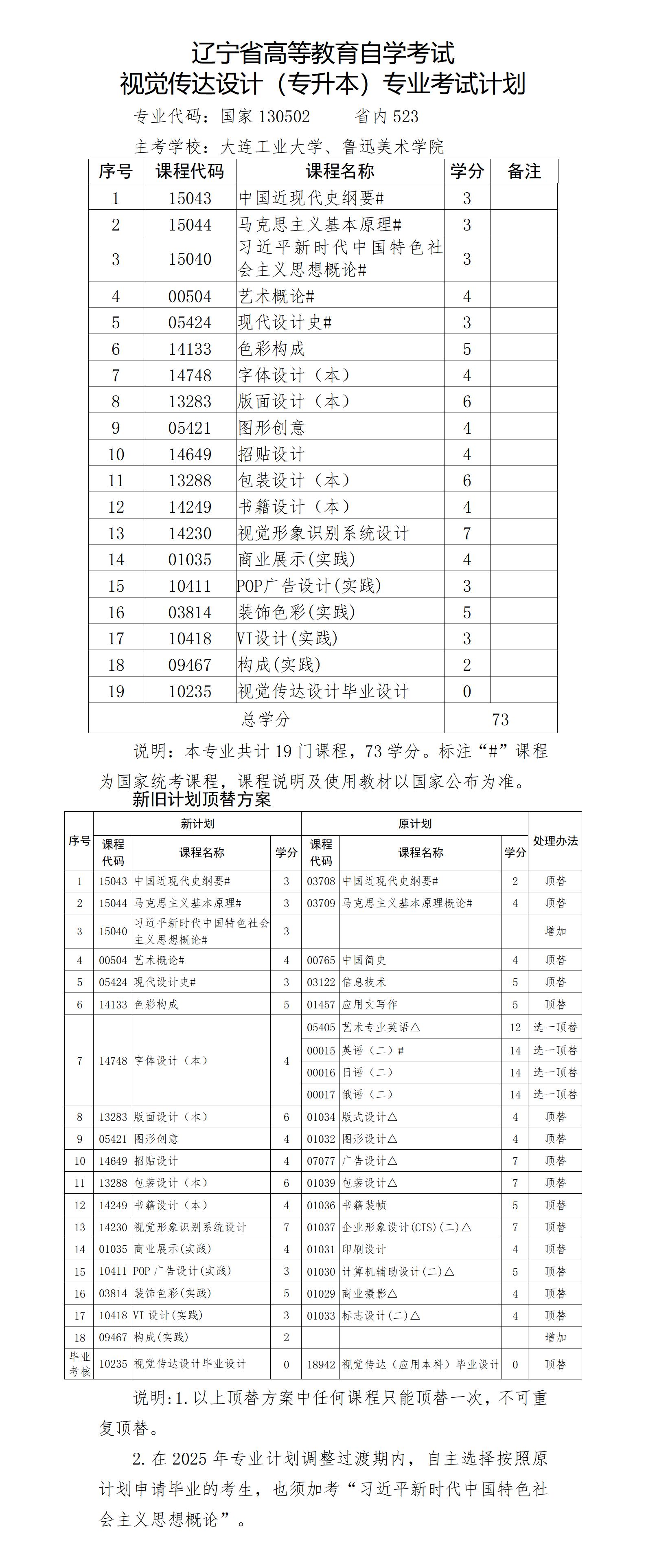 2025年4月遼寧自考本科視覺傳達(dá)設(shè)計(jì)專業(yè)計(jì)劃