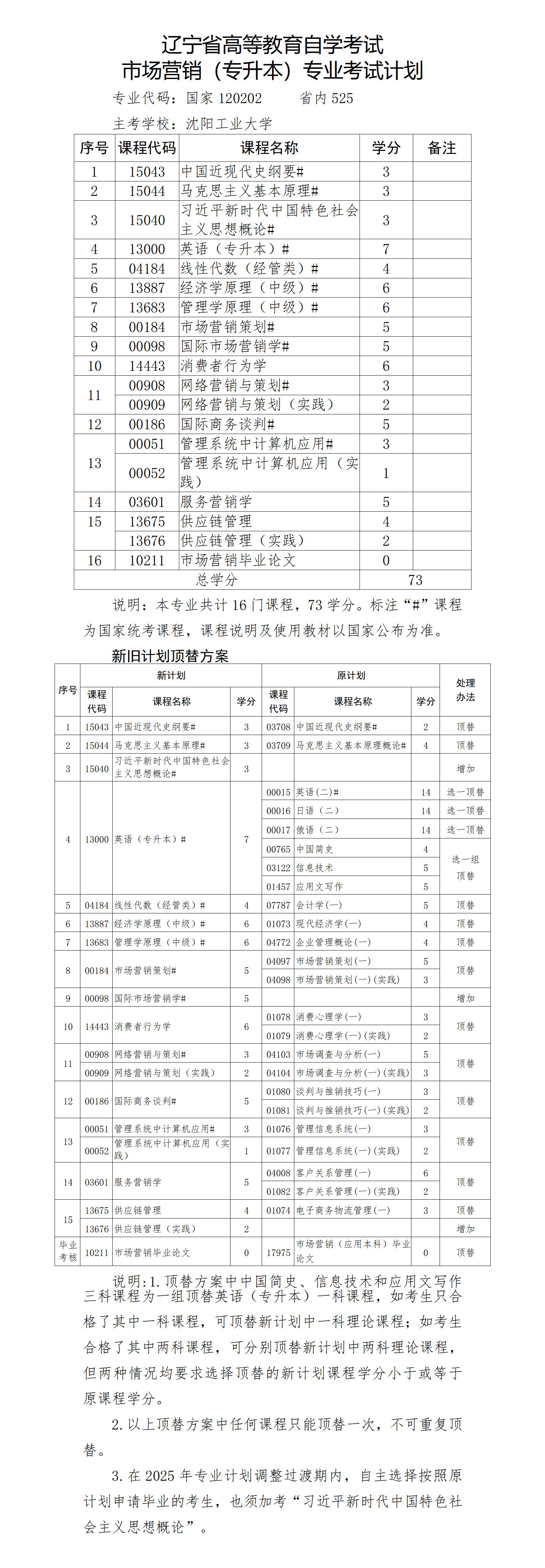 2025年4月遼寧自考本科市場營銷專業(yè)計劃