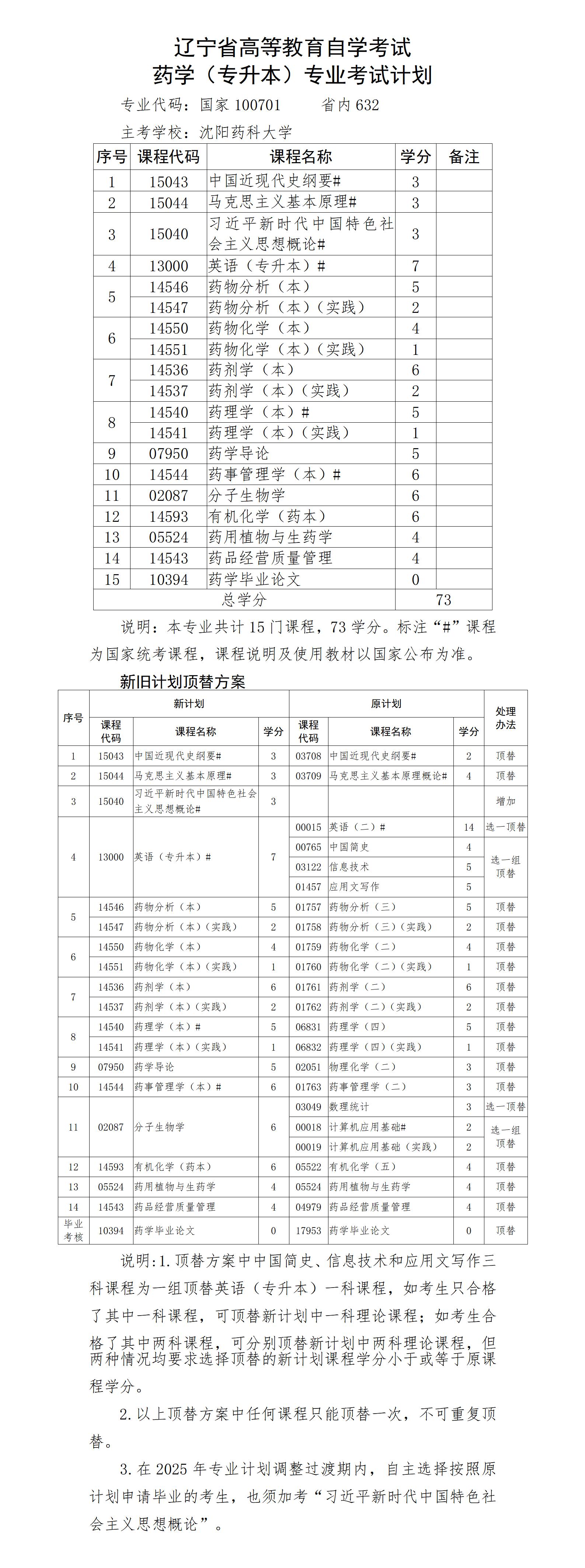 2025年4月遼寧自考本科藥學專業(yè)計劃