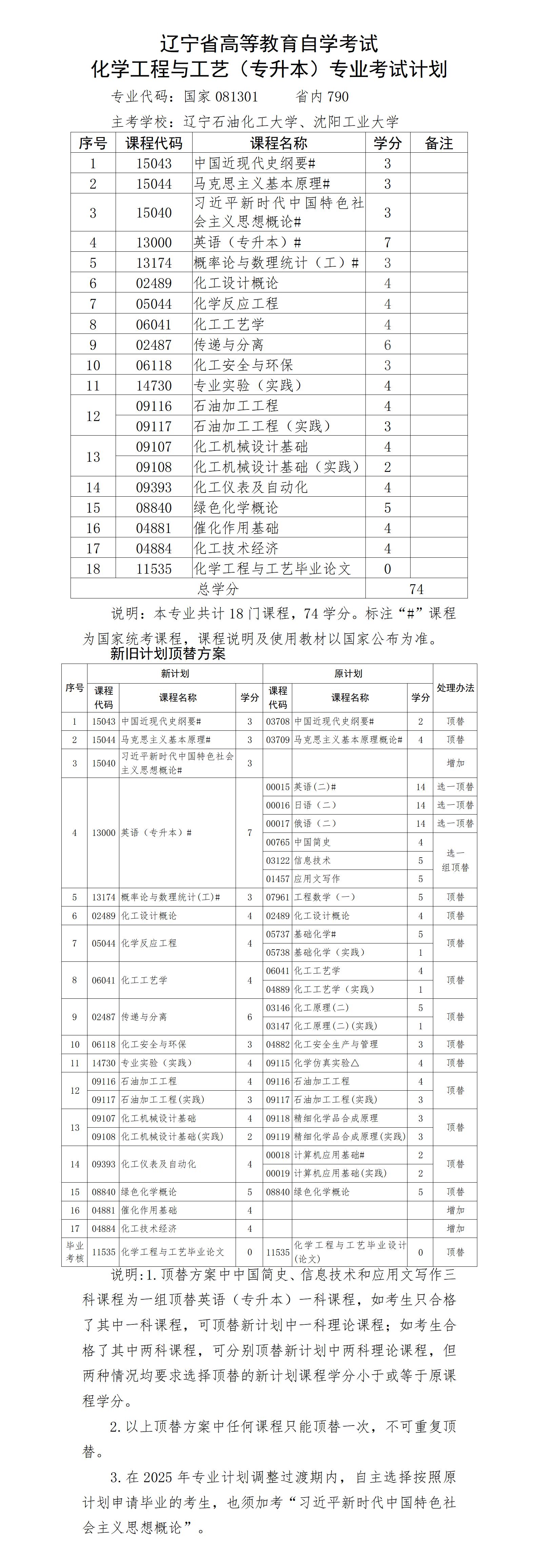 2025年4月遼寧自考本科化學(xué)工程與工藝專業(yè)計劃
