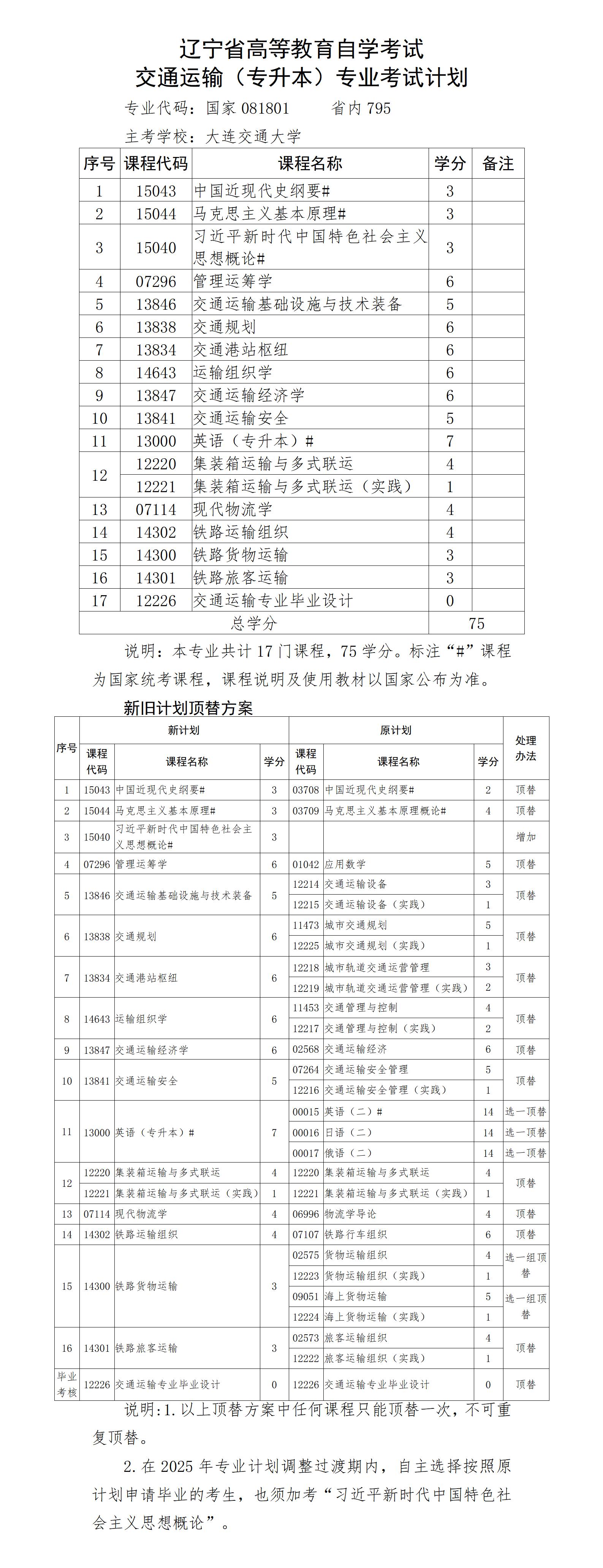 2025年4月遼寧自考本科交通運輸專業(yè)計劃