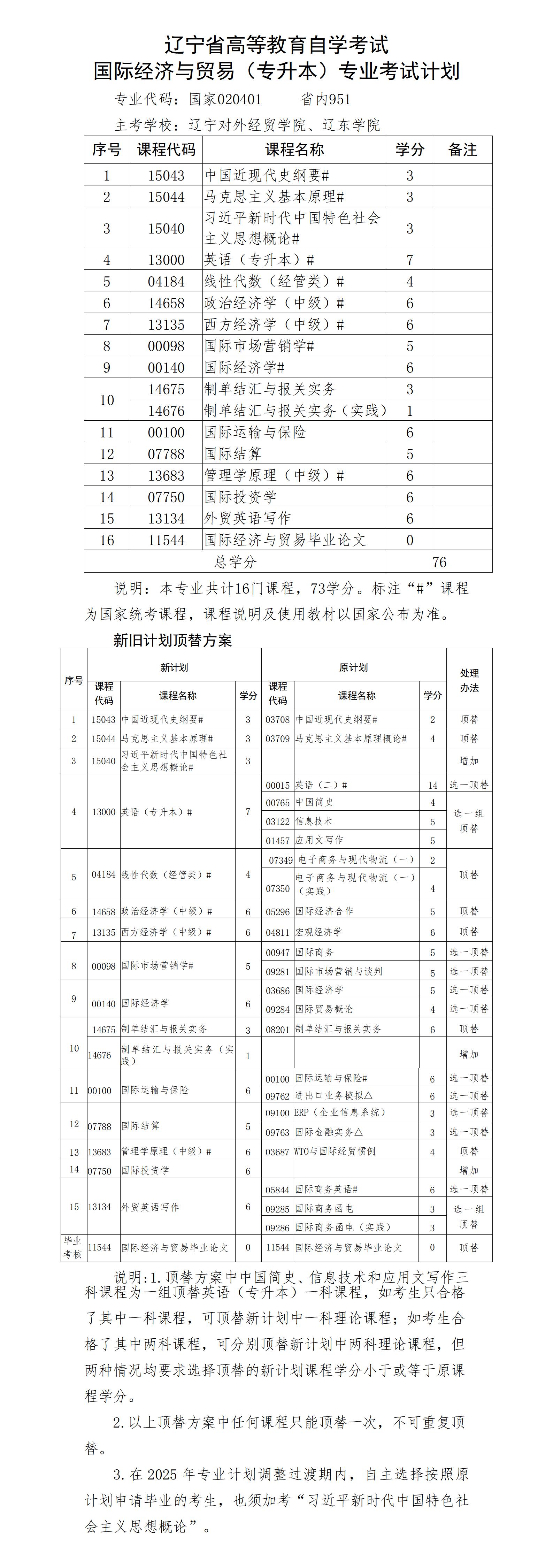2025年4月遼寧自考本科國際經(jīng)濟與貿(mào)易專業(yè)計劃