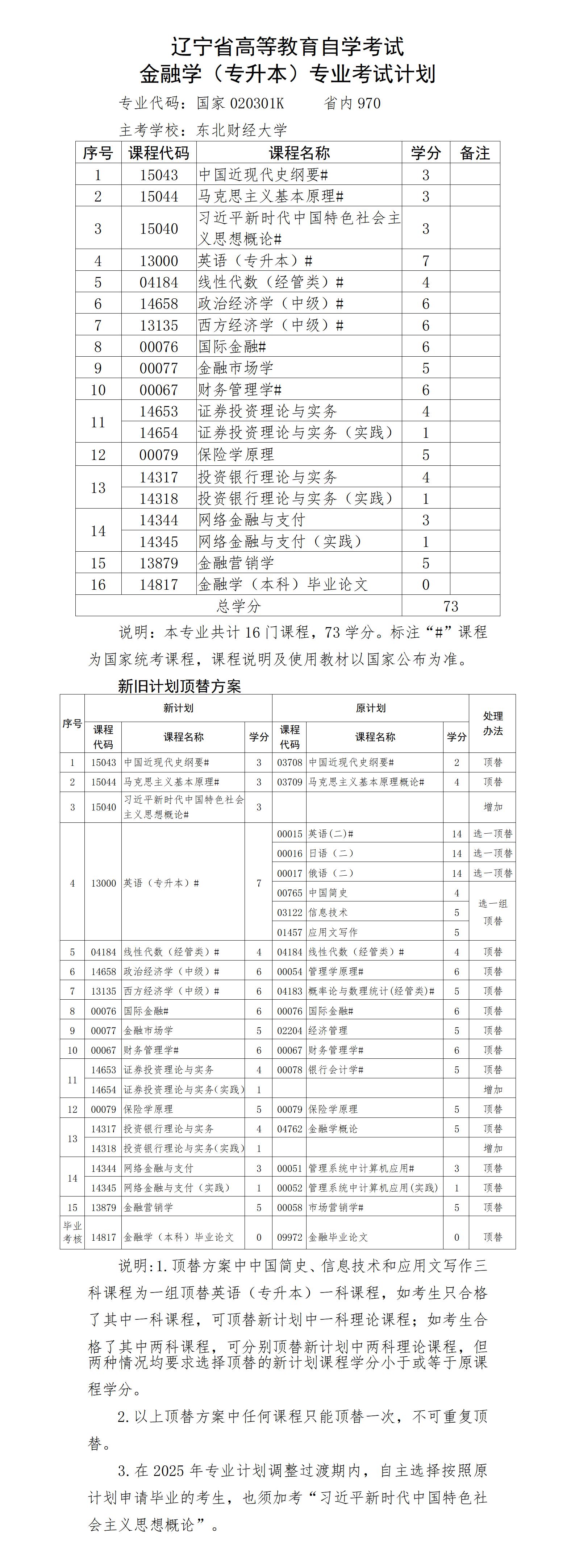 2025年4月遼寧自考本科金融學(xué)專(zhuān)業(yè)計(jì)劃
