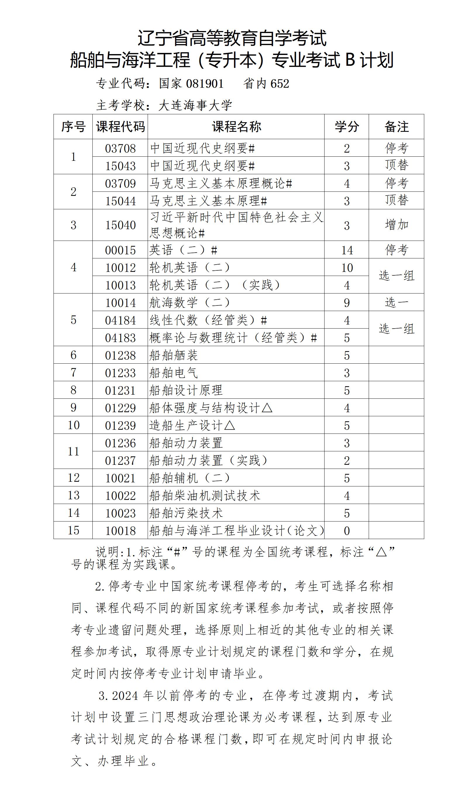 2025年4月遼寧自考本科船舶與海洋工程(B計劃)專業(yè)計劃-??歼^渡