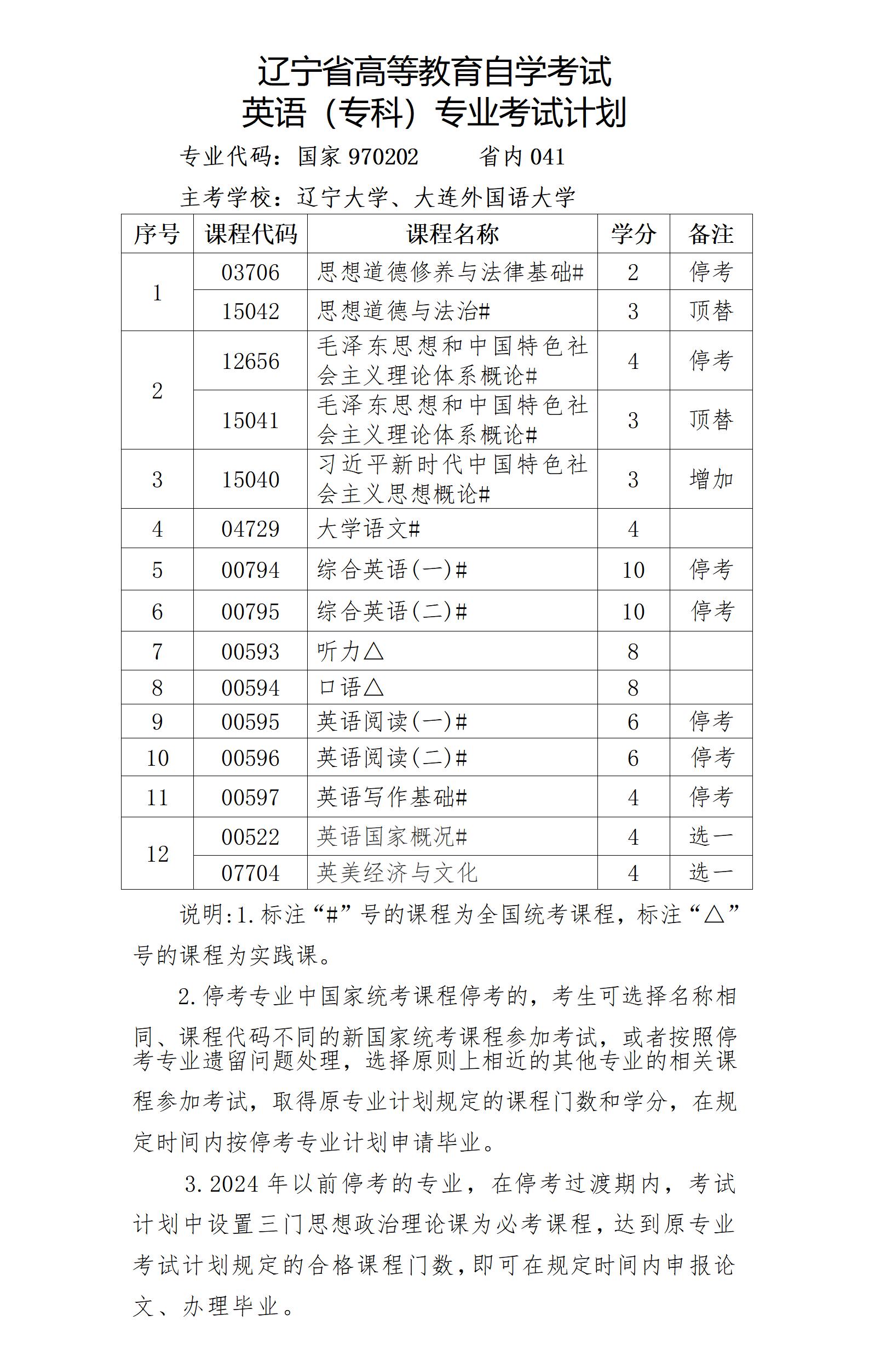 2025年4月遼寧自考??朴⒄Z專業(yè)計(jì)劃-停考過渡