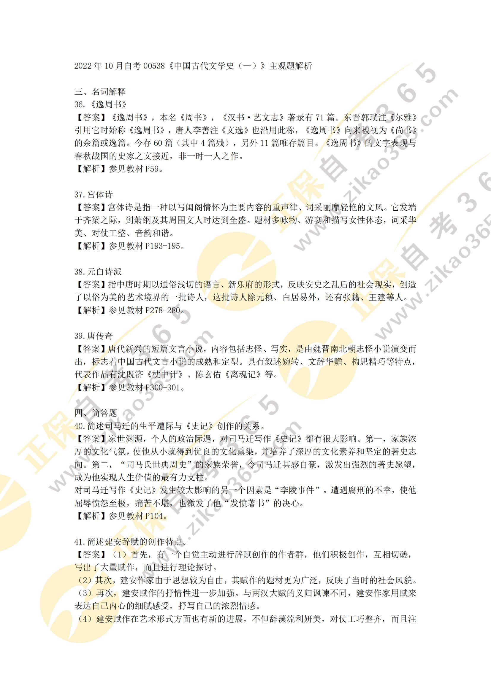 自考365提示您:以上內(nèi)容為2022年10月自考中國古代文學(xué)史(一)試題答案及解析,關(guān)注本站,更多試題及答案解析將陸續(xù)發(fā)布。