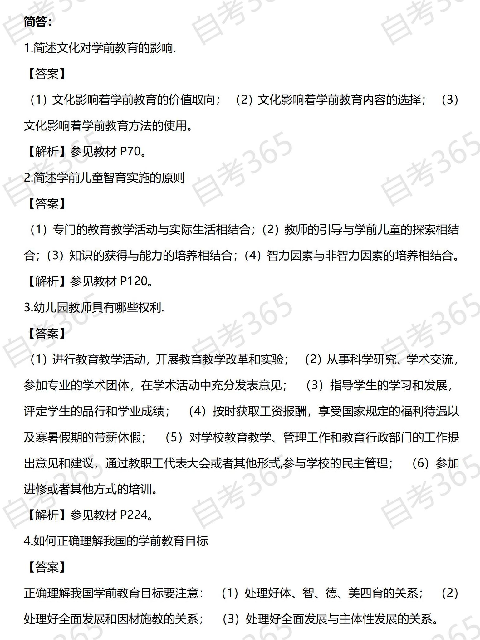 2023年10月自考學前教育原理部分試題及答案(考友回憶版)