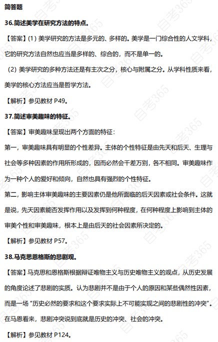 2023年10月自考美學(xué)部分試題及答案(考友回憶版)