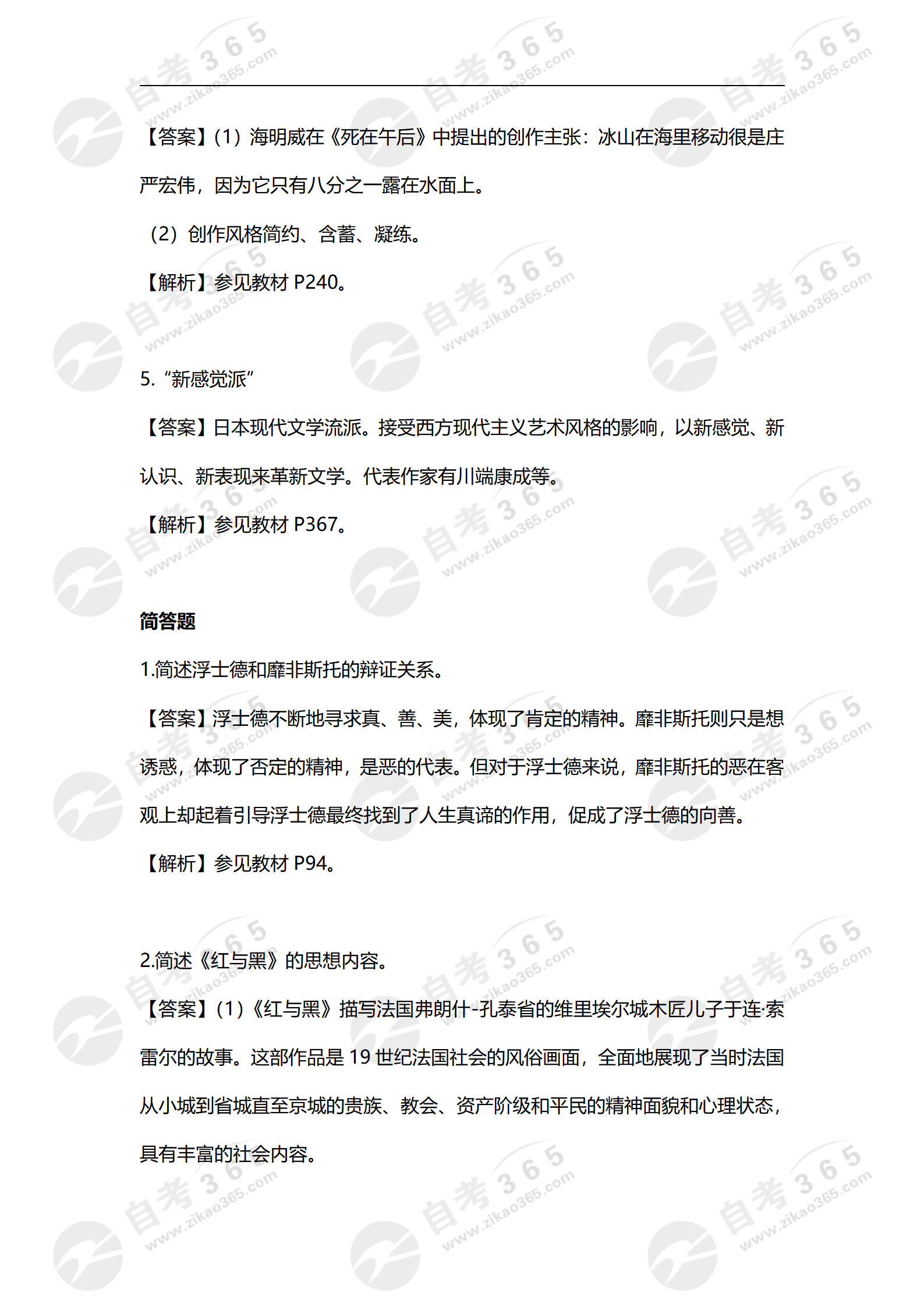 2024年4月自考外國(guó)文學(xué)史部分試題及答案(考友回憶版)