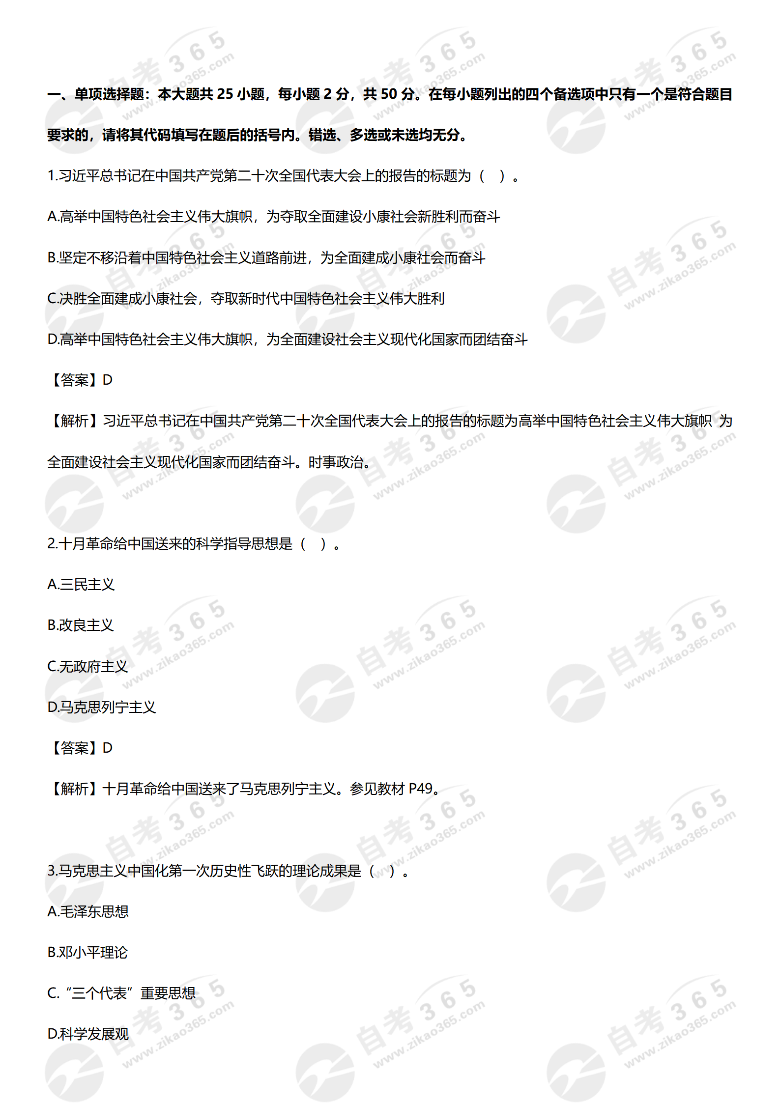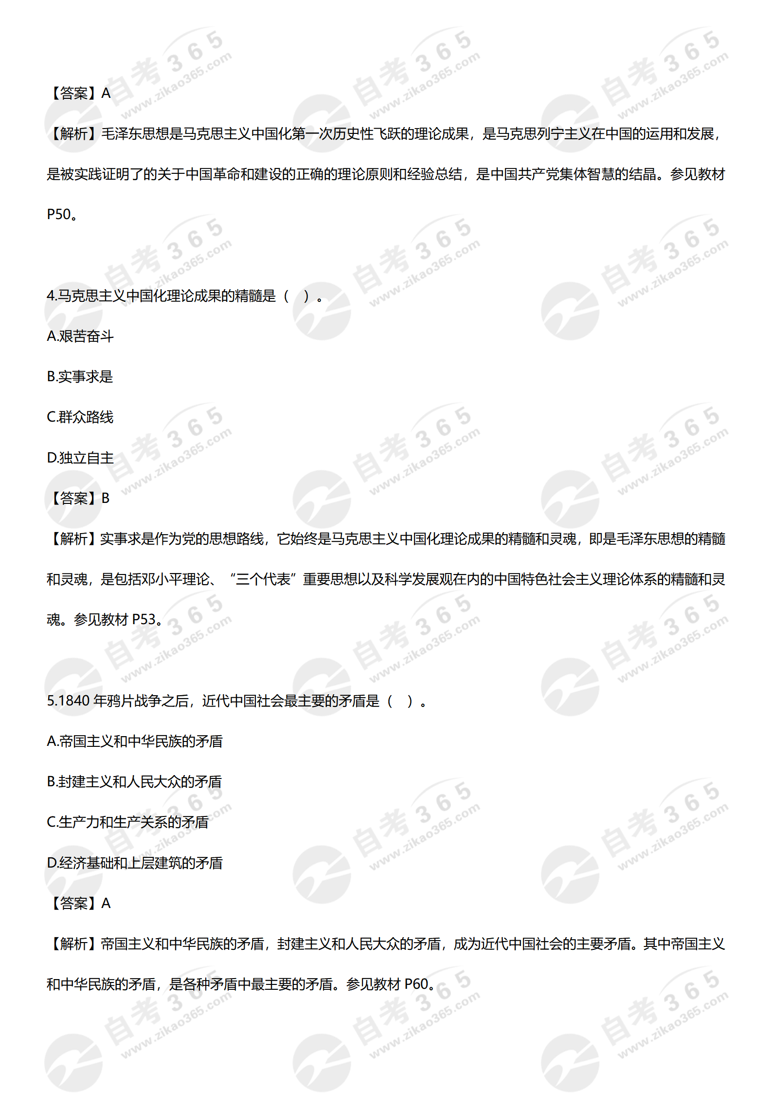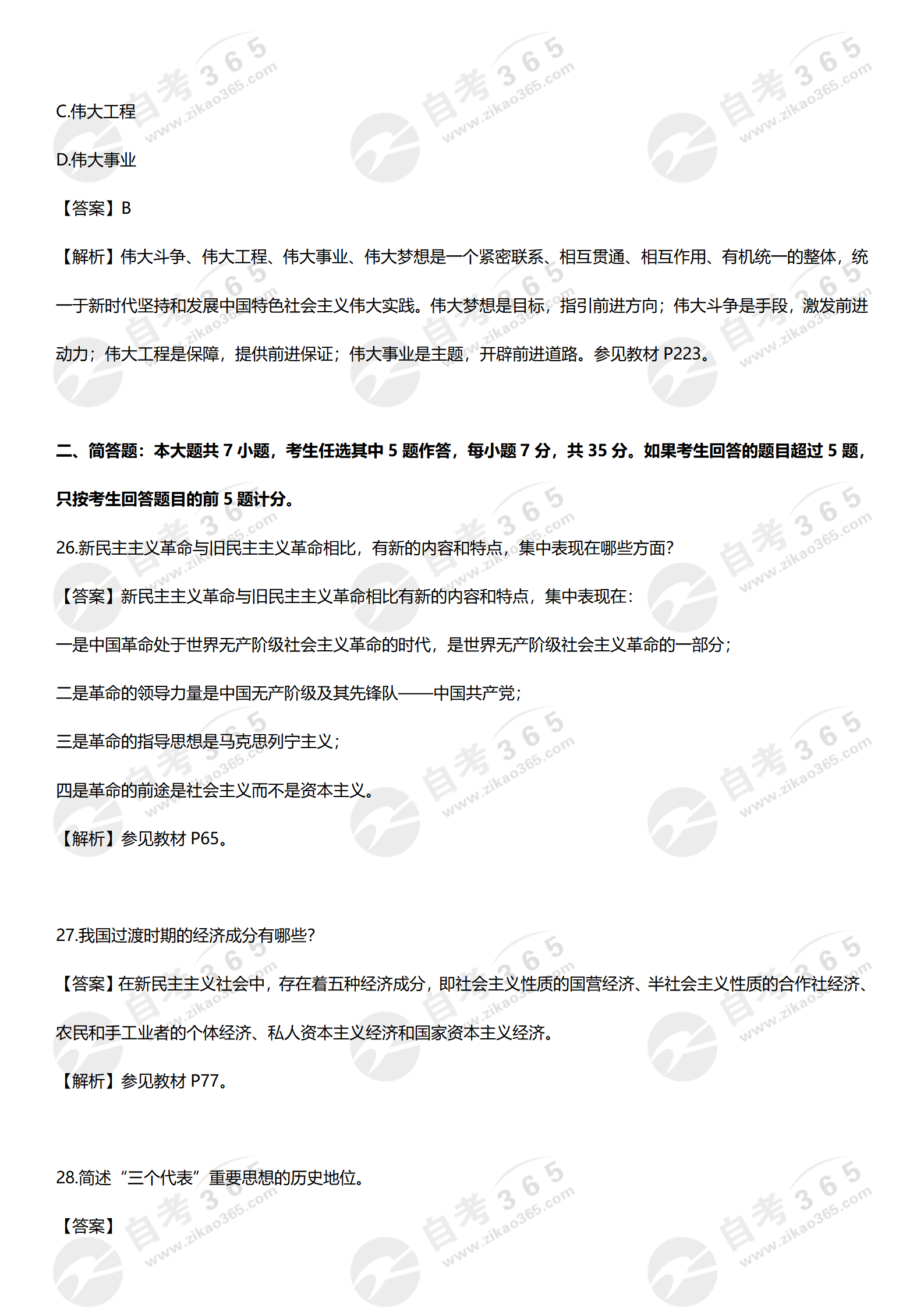 2024年4月自考毛澤東思想和中國(guó)特色社會(huì)主義理論體系槪論部分試題及答案(考友回憶版)