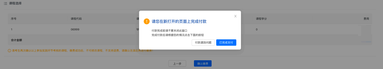 瀏覽器會打開新頁面,農行收銀臺頁面,在此頁面可進行選課費用支付。