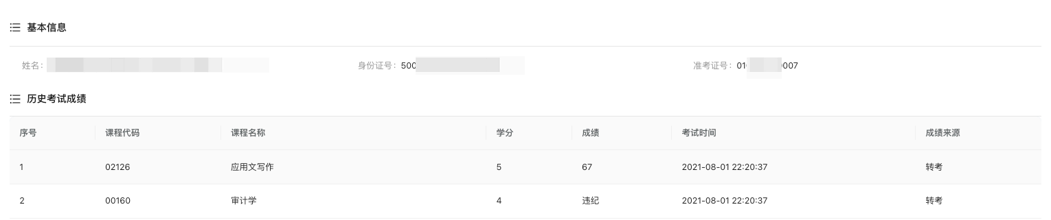 4、驗證通過后,您將成功登錄系統(tǒng),此時即可在指定區(qū)域內(nèi)查詢到您2024年10月份參加的自學(xué)考試成績。