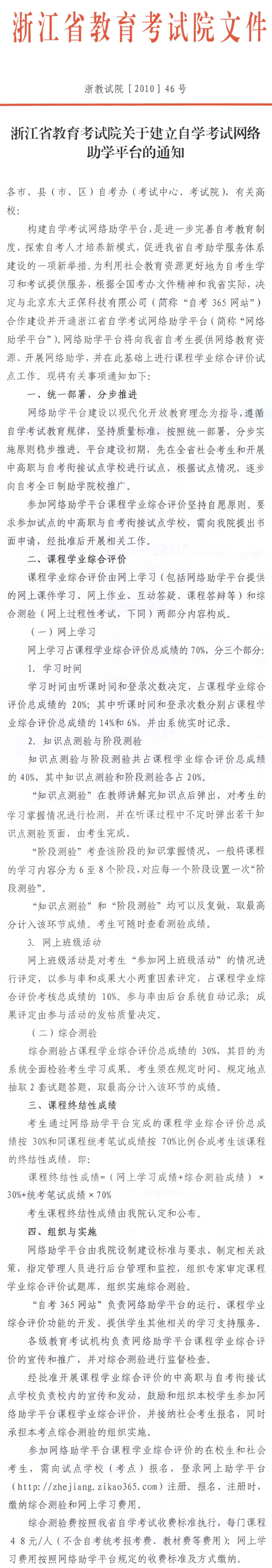 - 浙江省建立自學(xué)考試網(wǎng)絡(luò)助學(xué)平臺的通知