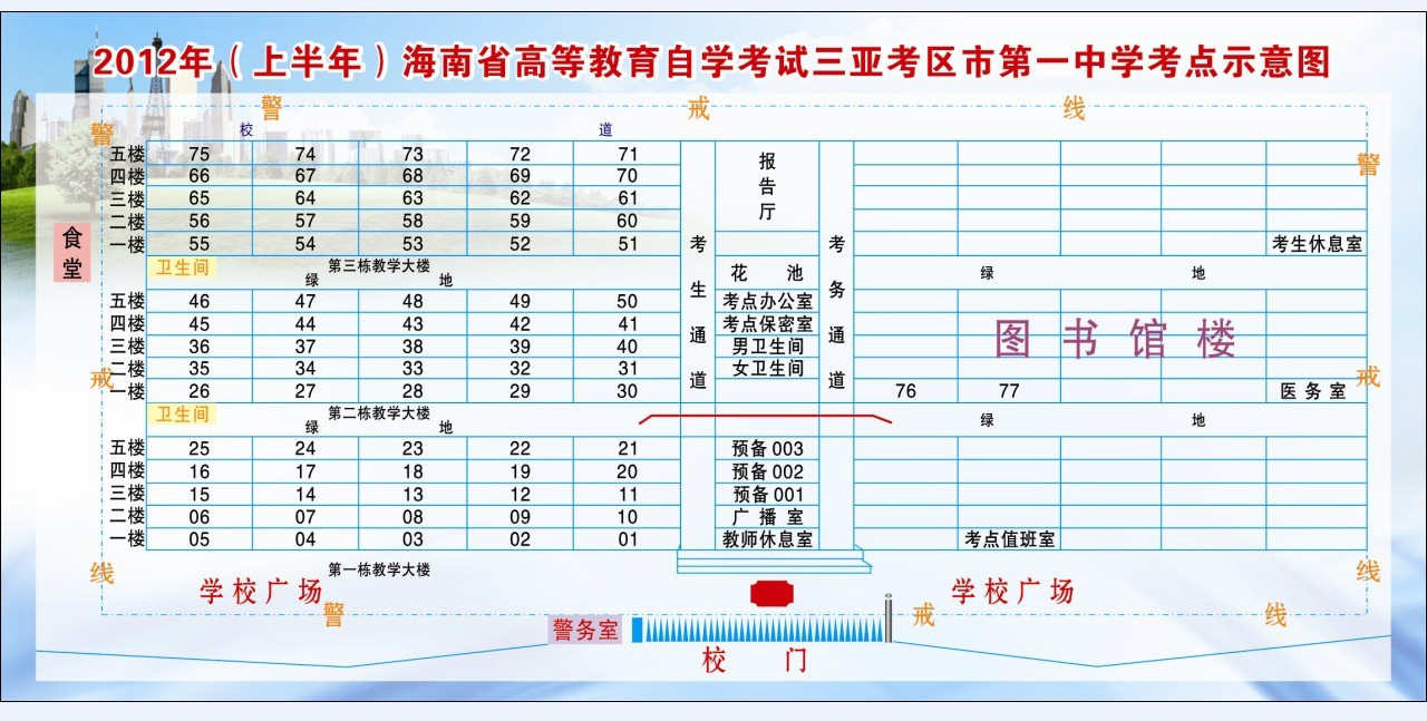 海南三亞2012上半年自考考點示意圖(市第一中學(xué))