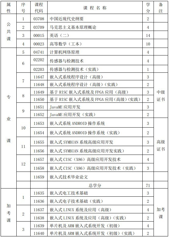 廣西2013年自考嵌入式技術專業(獨立本科段)專業計劃