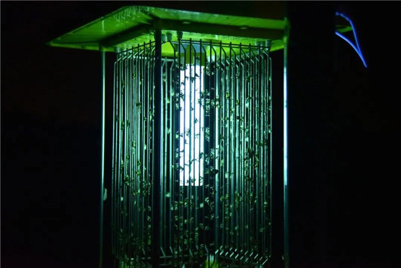 上圖:太陽能殺蟲燈夜間亮燈工作狀態