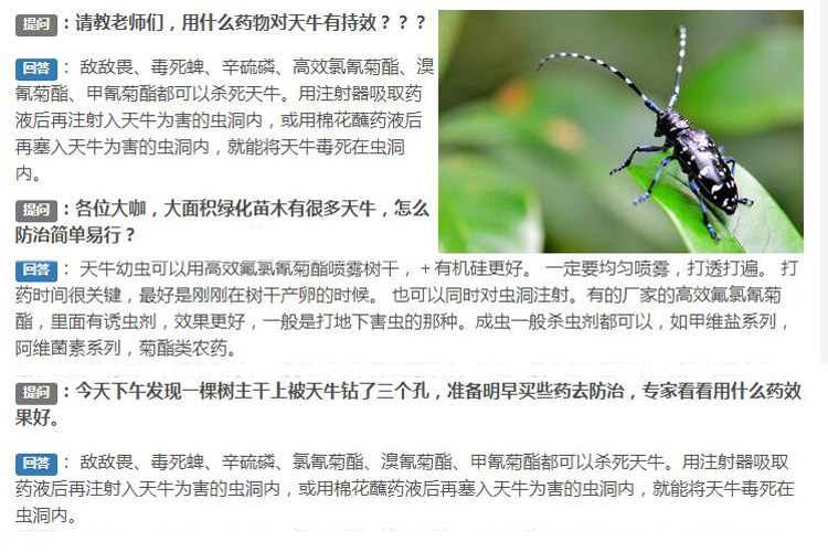 提問:天牛用什么藥防治那種熏蒸觸殺藥劑效果比較好。