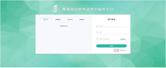 進入青海省自學(xué)考試考生服務(wù)平臺,找到頁面右下角“注冊”按鈕并點擊。
