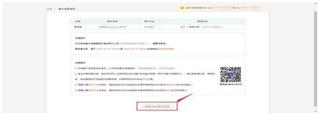 當(dāng)報考信息未審核或?qū)徍瞬煌ㄟ^可點擊頁面右上角“修改”按鈕進行修改,若已審核通過,則只能進行信息查看。