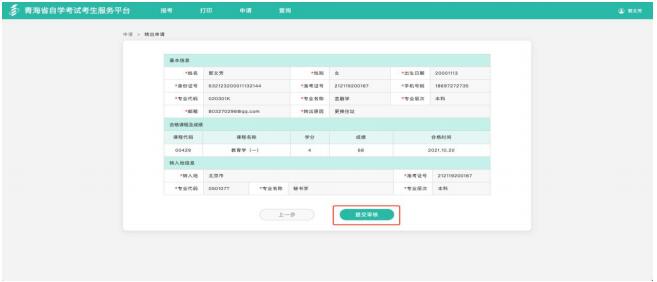 (4)確認申請信息無誤后,點擊“提交審核”;
