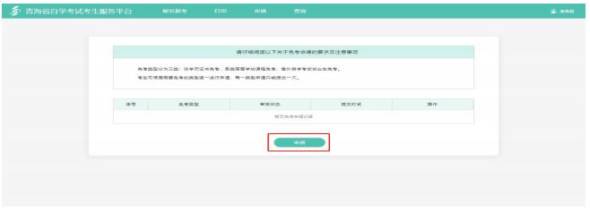 (1)進入青海省自學(xué)考試考生服務(wù)平臺,找到頁面上方“申請”并在彈出的菜單中選擇“免考申請”;