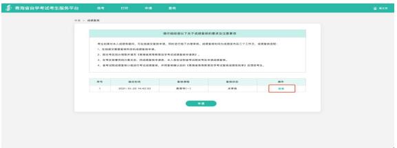 (2)進入成績復(fù)核頁面,點擊“申請”按鈕;