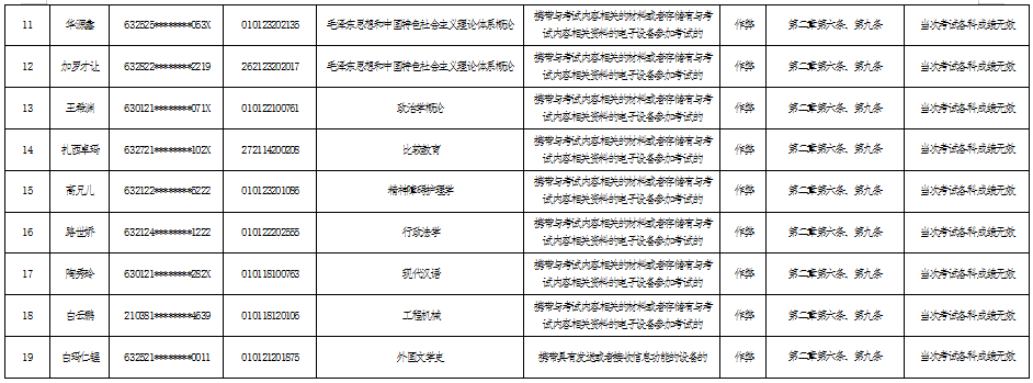 青海省關(guān)于2023年下半年高等教育自學(xué)考試違規(guī)考生處理決定的通報