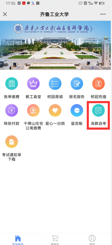 三、登錄后點(diǎn)擊屏幕中的“高教自考”端口