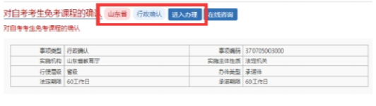 (二)在網(wǎng)站首頁中間的搜索框中輸入“對自考考生免考課程的確認(rèn)”,點擊“一網(wǎng)通辦”后出現(xiàn)如下頁面。