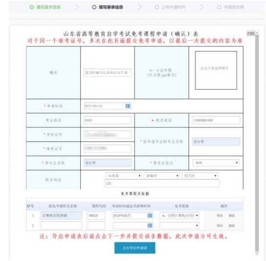4.填寫完申請表后,點擊“點擊導(dǎo)出申請表”按鈕,可下載Word 版免考申請表留存。