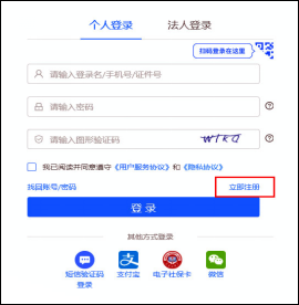 (四)進入下圖所示的“個人登錄”頁面。如果從未使用過山東省政務網,登錄前需要先完成個人注冊,點擊右下角的“立即注冊”,填寫基本信息完成個人注冊賬號。個人注冊賬號完成后,返回“個人登錄”界面。