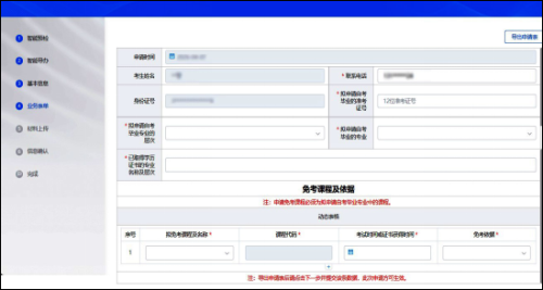 4.填寫完業務表單后,點擊“下一步”按鈕,根據提示導出申請表,用于考生個人留存。