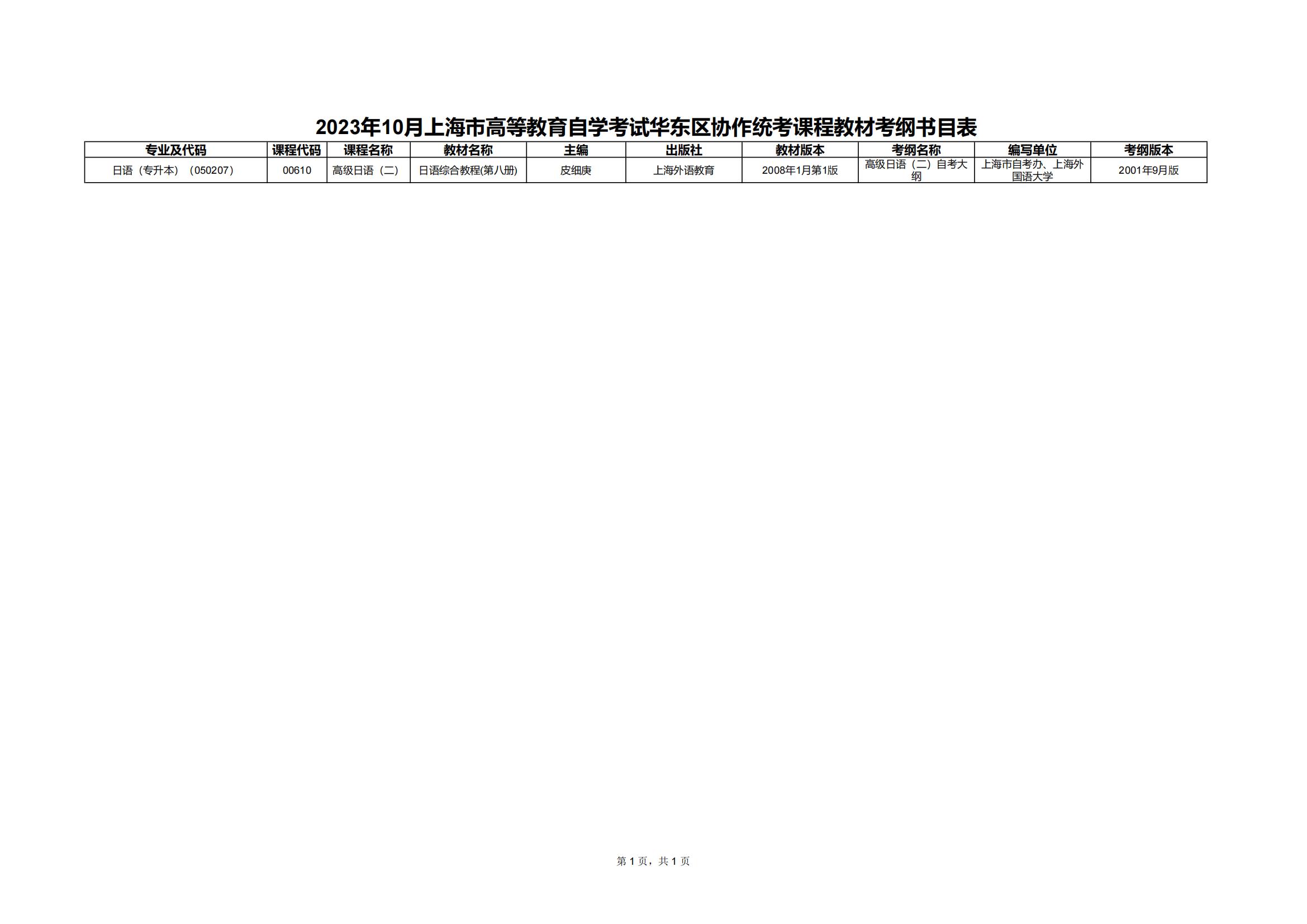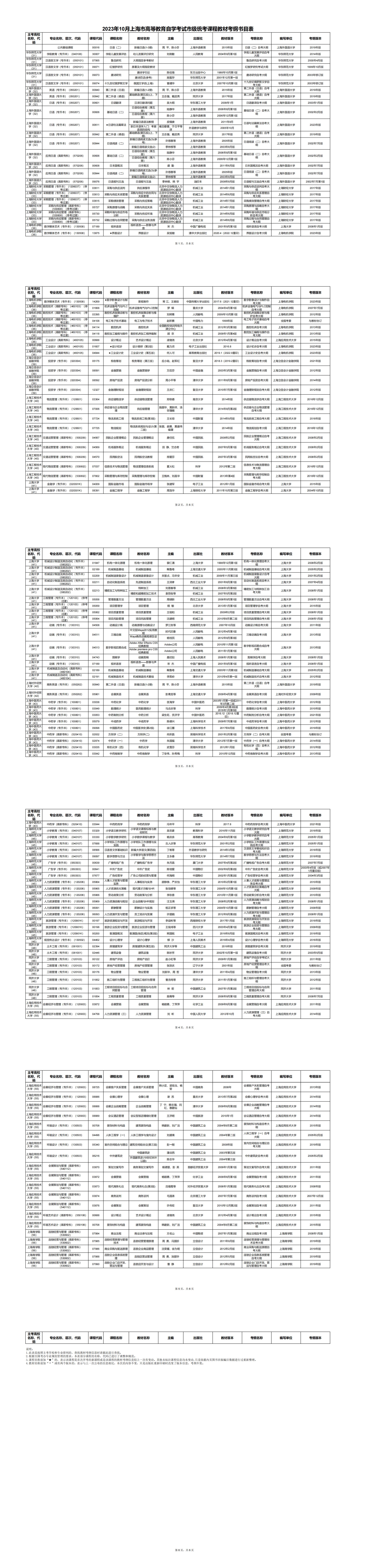 2023年10月上海市高等教育自學(xué)考試教材考綱書(shū)目表