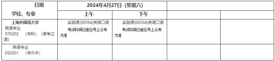 2024年4月上海市高等教育自學(xué)考試上海外國語大學(xué)各專業(yè)課程考試日程安排表(第三周)
