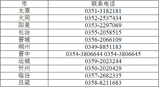 山西省高等教育自學(xué)考試各市自考機(jī)構(gòu)咨詢電話