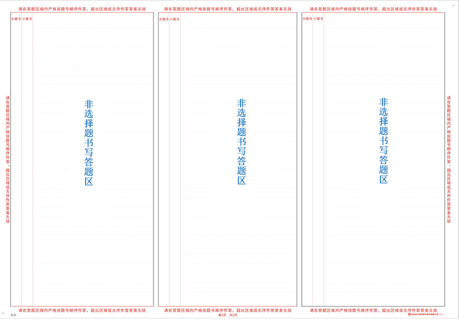 答題卡非選擇題部分的原始電子圖像,需根據(jù)閱卷評(píng)分要求,由計(jì)算機(jī)按照答題區(qū)域進(jìn)行分區(qū)切割,如果考生答題時(shí)超出答題區(qū)或弄亂答題次序,閱卷教師將看不全或看不到本題的答題圖像,進(jìn)而影響考生得分。